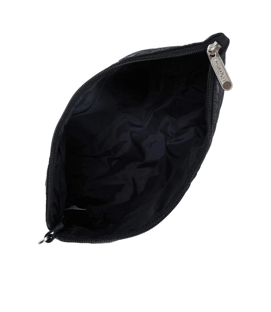 Zip top main closure, Exterior side metal D-ring, Interior back wall open pocket
