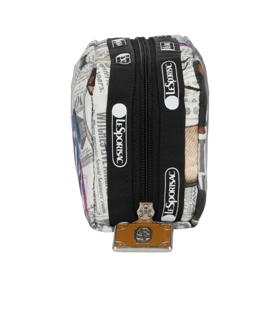 Zipped main closure, Interior back wall open pocket, Two interior front wall open pockets