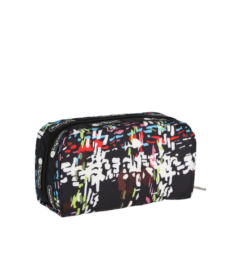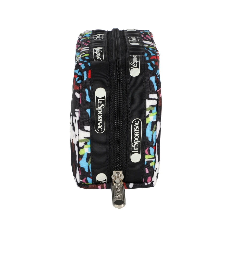 Zipped main closure, Interior back wall open pocket, Two interior front wall open pockets