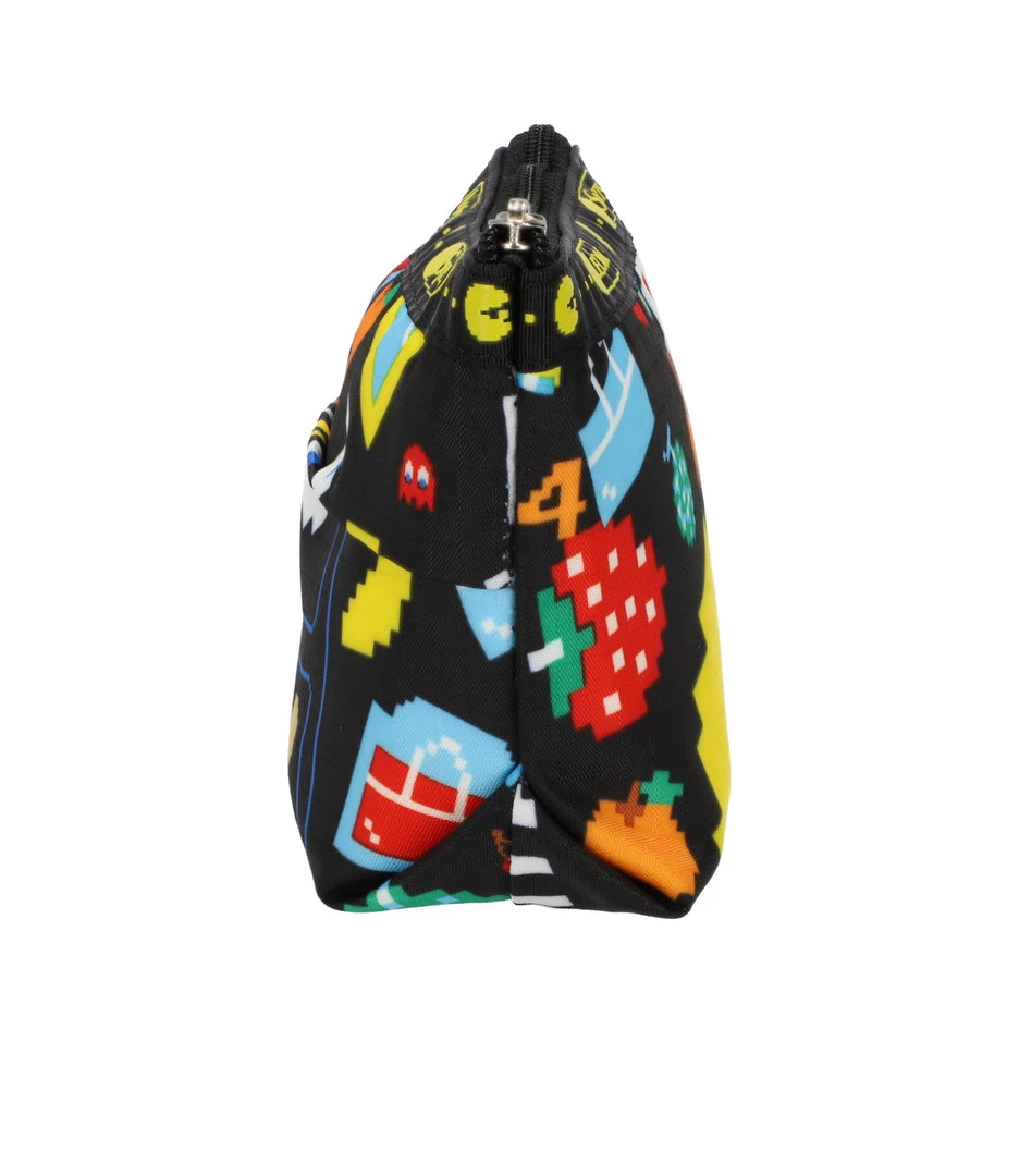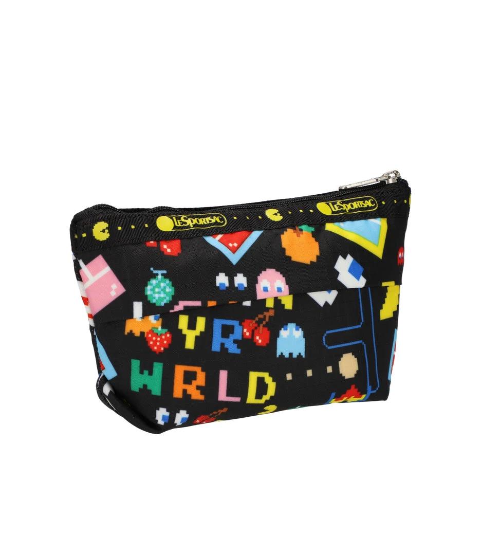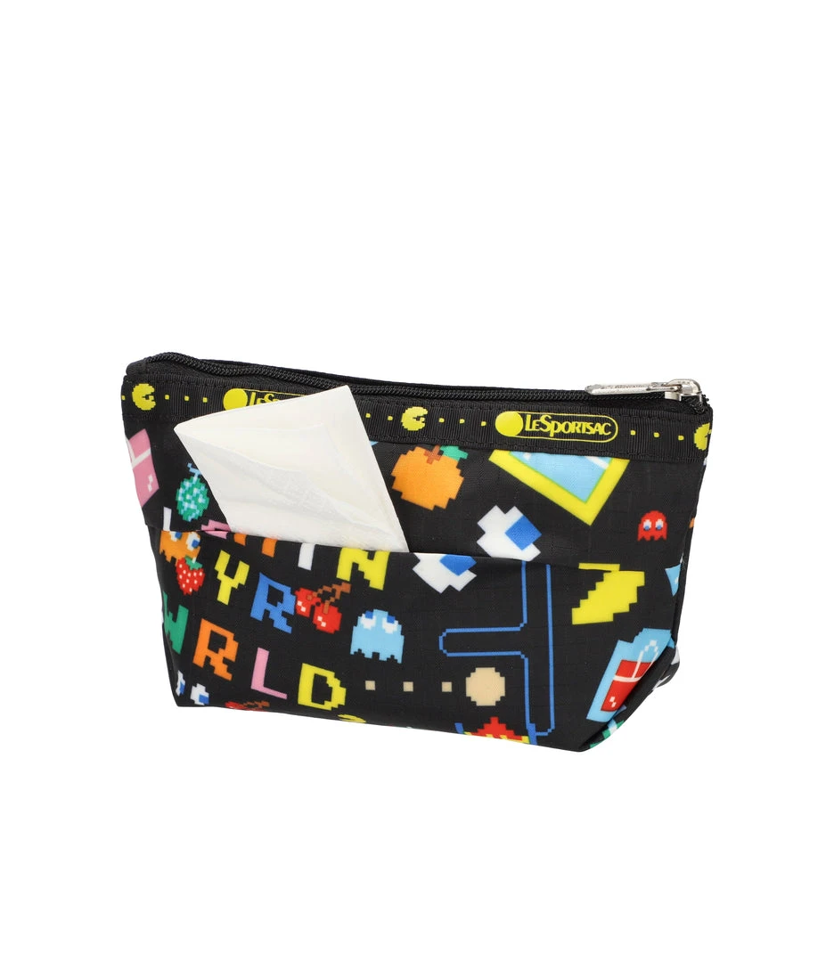 Zip top main closure, Exterior back panel tissue pocket (tissues not included)