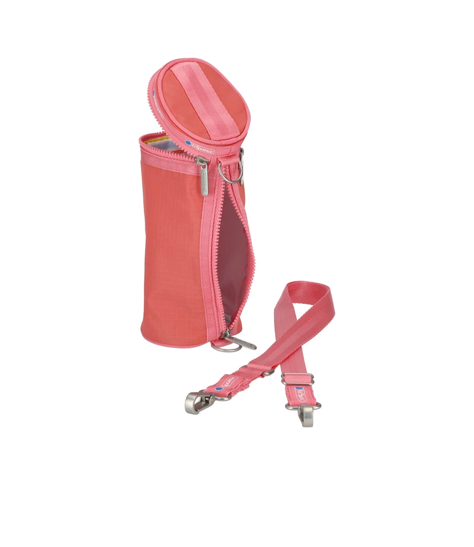 Top zip closure with dual zipper pulls, Exterior side zip closure, 1in/2.5cm wide adjustable/ detachable shoulder strap with logo grosgrain details (Max length: 50 in/127 cm, Min length: 28.54 in/72.5 cm), This small multi-purpose bag can be worn as a small crossbody, or used to organize cosmetics and brushes, or to carry your water bottle (max bottle size: 8.5H x 3.5W in/21.6H x 8.9Wcm), or to transport tennis balls to your next match!h!
