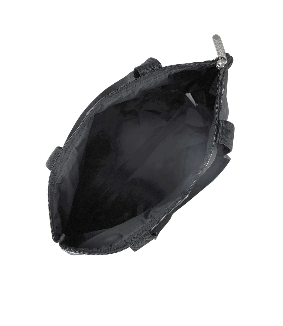 Made using 2.8 recycled plastic bottles, Zipped main closure, 1in (2.5cm) wide top handles (Length: 24.6 in/62.5 cm), Interior back wall combination zip/open pocket