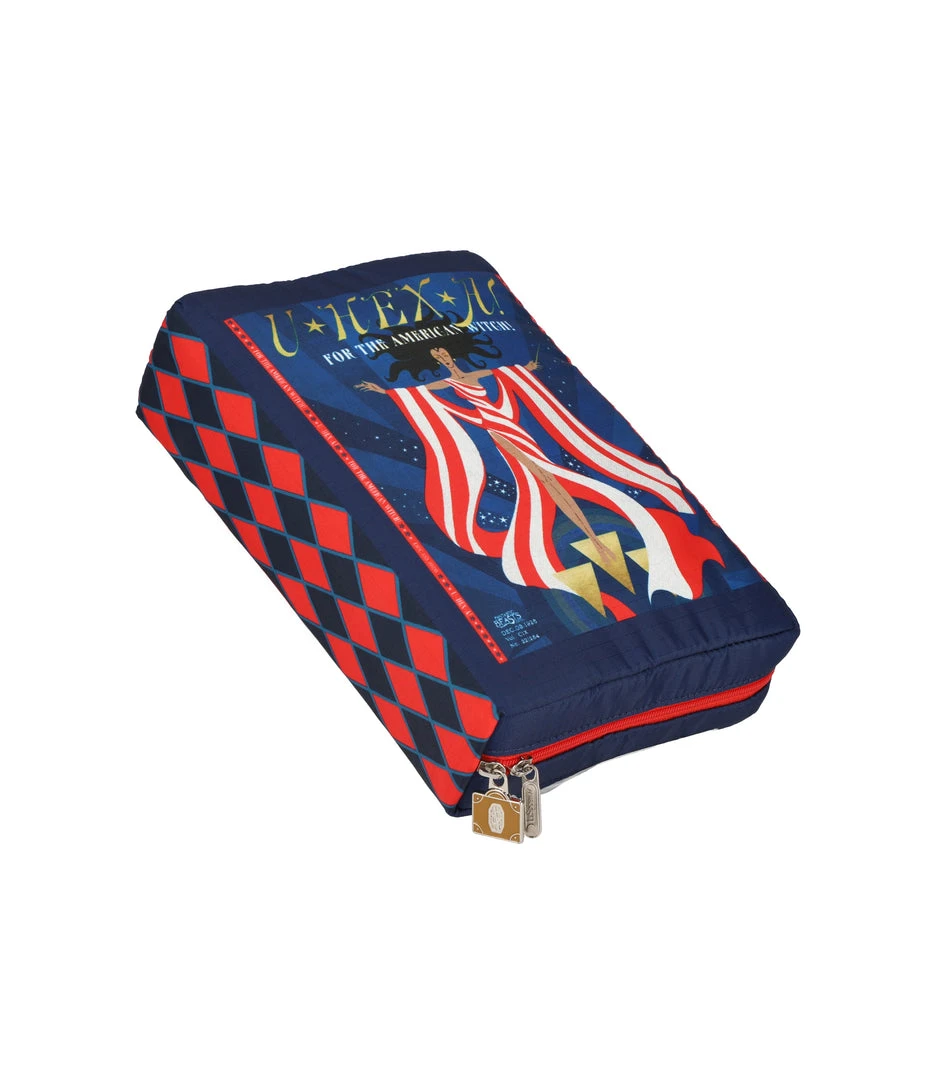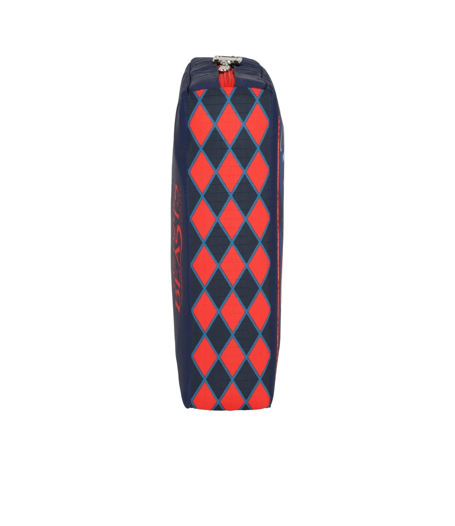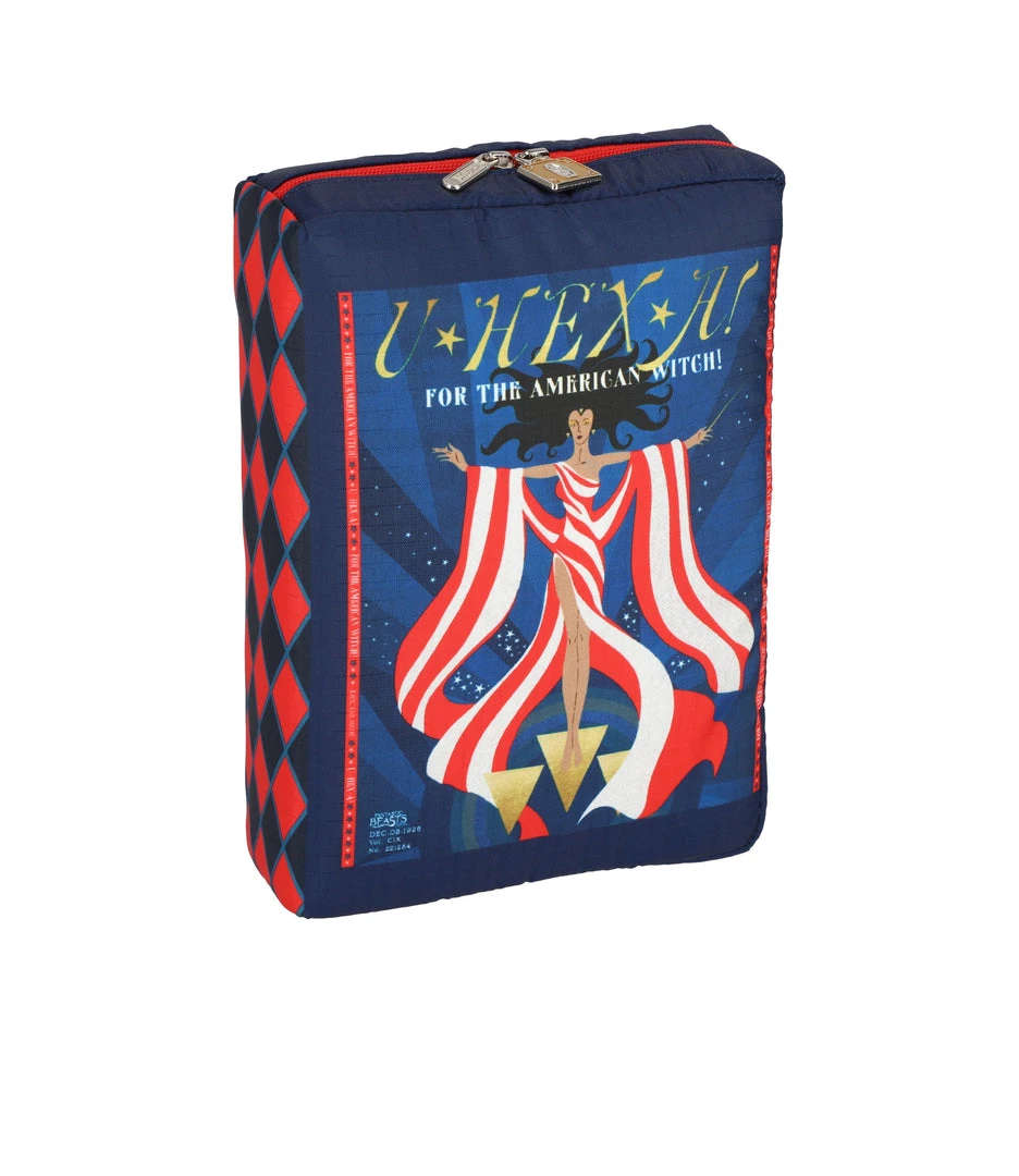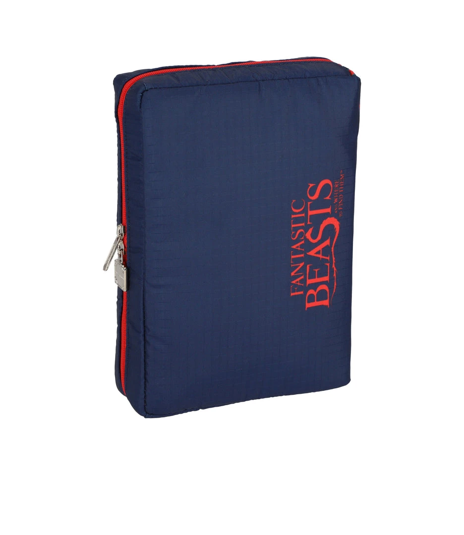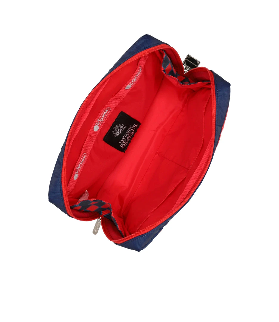 Zip main closure with dual zipper pulls, Interior front wall open pocket, Two interior back wall open pockets