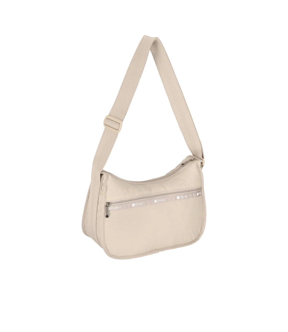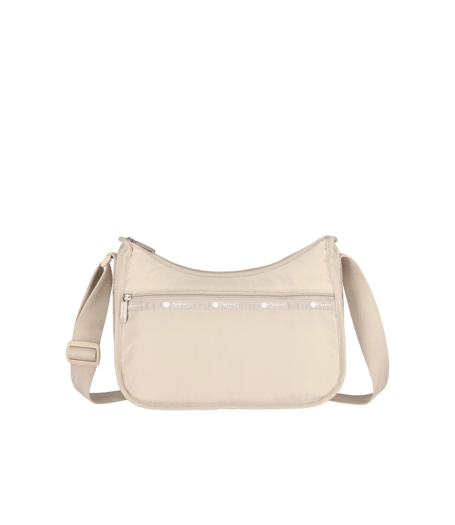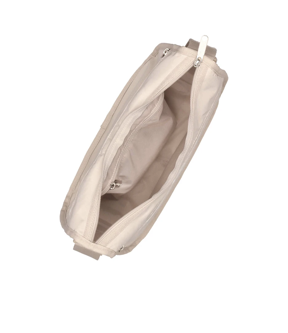 Zipped main closure, Exterior front pocket with zipped closure, Exterior back pocket with zipped closure, Interior back wall hanging zipper pocket, Adjustable shoulder strap (Max. 50in / 127cm), Includes matching pouch with zipped closure