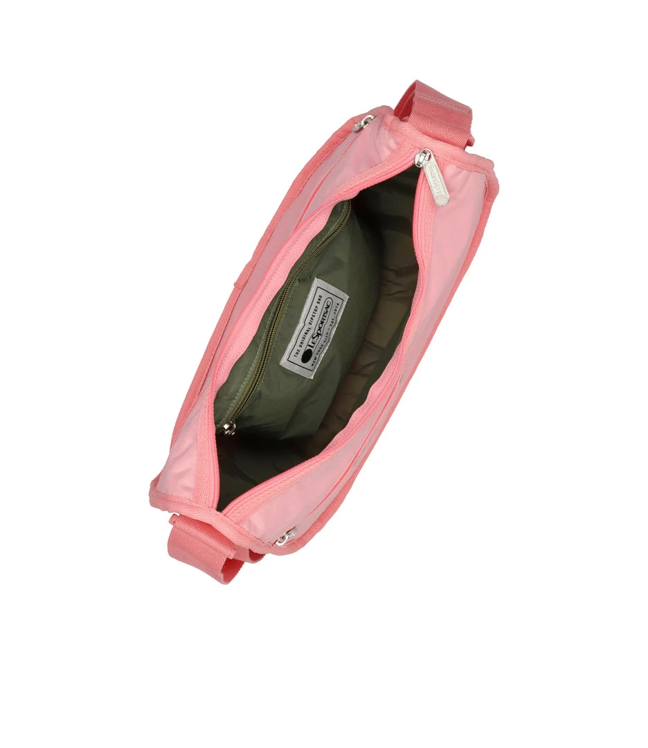 Zipped main closure, Exterior front pocket with zipped closure, Exterior back pocket with zipped closure, Interior back wall hanging zipper pocket, Adjustable shoulder strap (Max. 50in / 127cm), Includes matching pouch with zipped closure