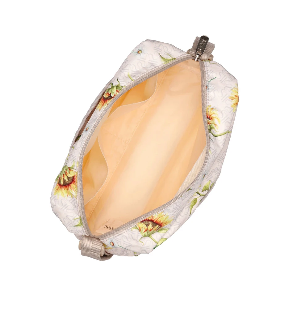 Zip top main closure, Exterior front pocket with zip closure, Exterior back pocket with zip closure, Adjustable crossbody strap (52in/132.08cm), Two interior back wall open pockets, Plastic hardware