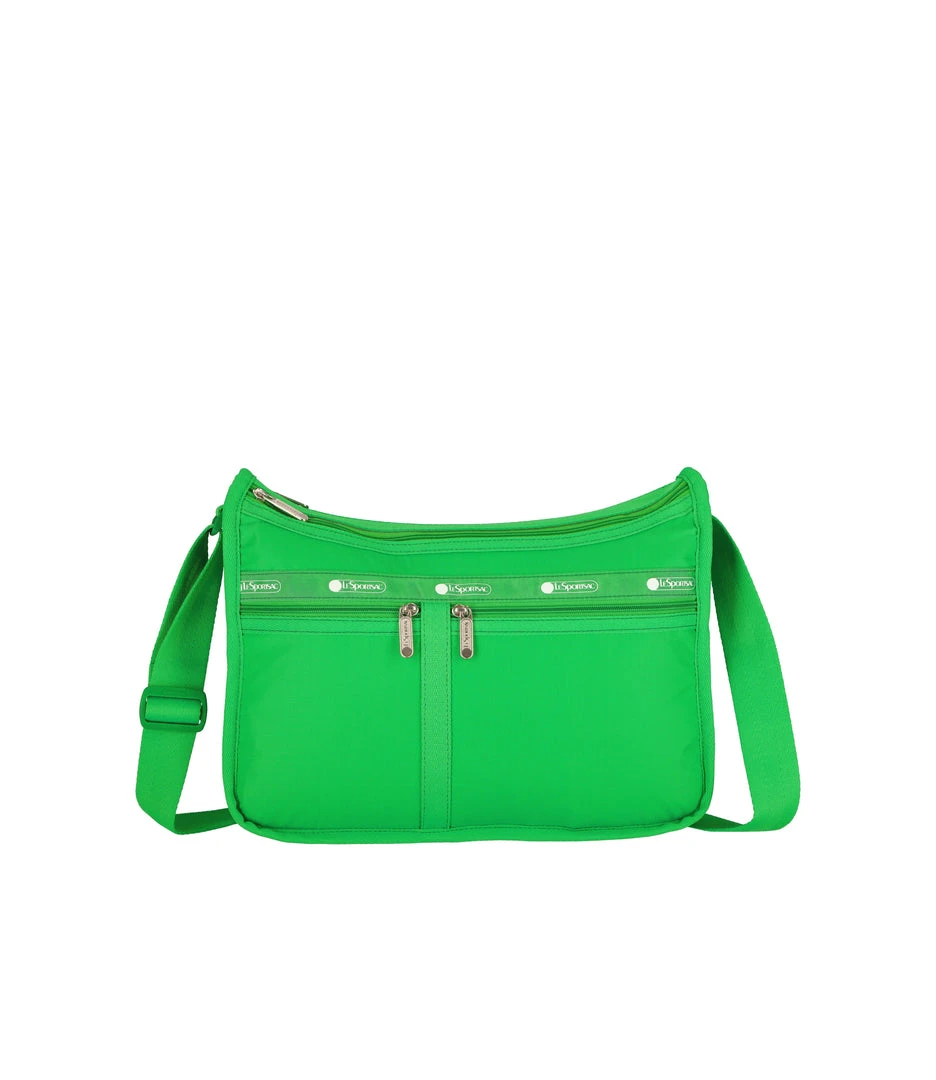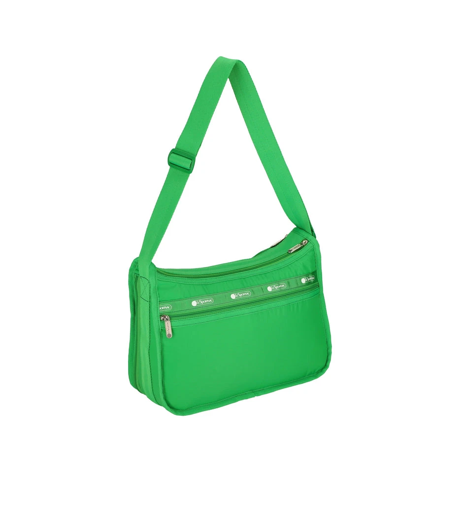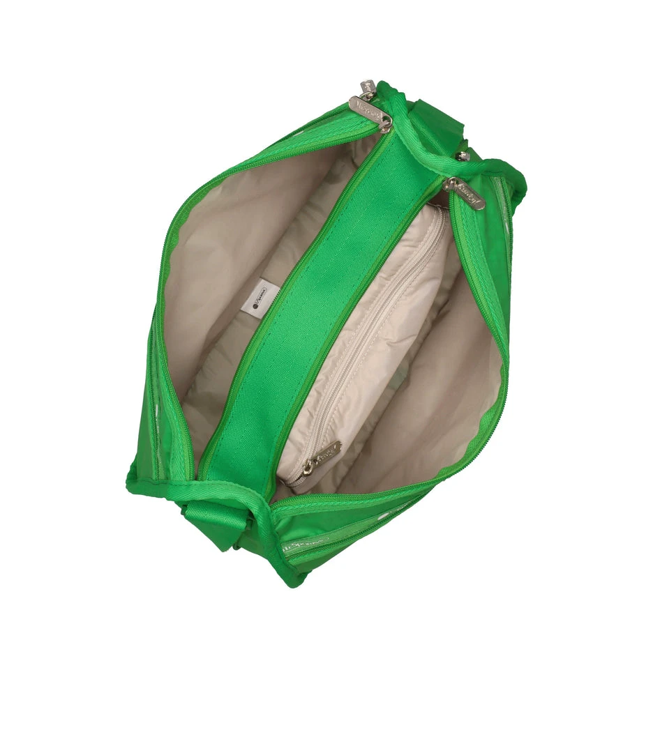 Two main compartments with zipped closures, Zip out expandable front main compartment, Exterior back pocket with zipped closure, Two exterior front pockets with zipped closures, Adjustable shoulder strap (Max. 52in/132cm), Includes matching pouch with zipped closure