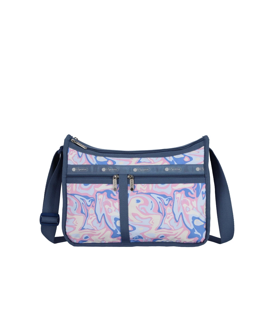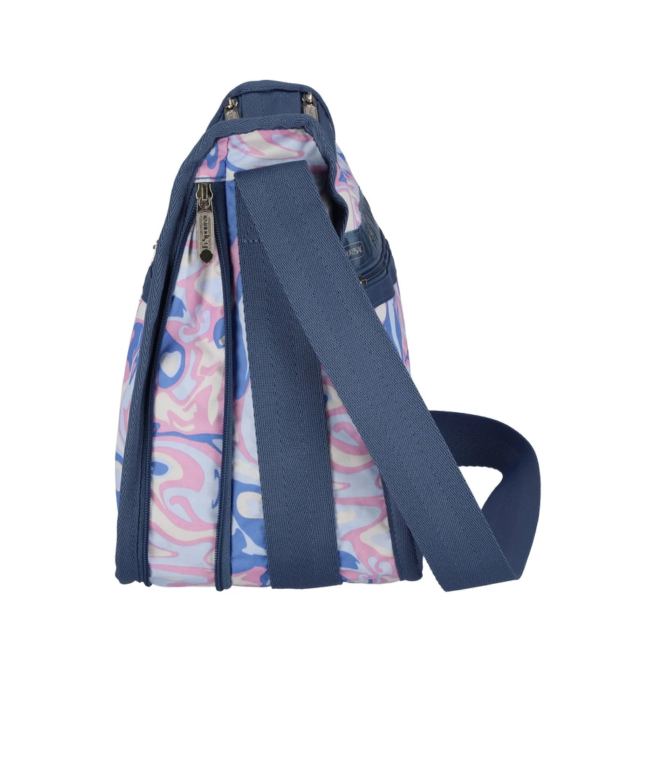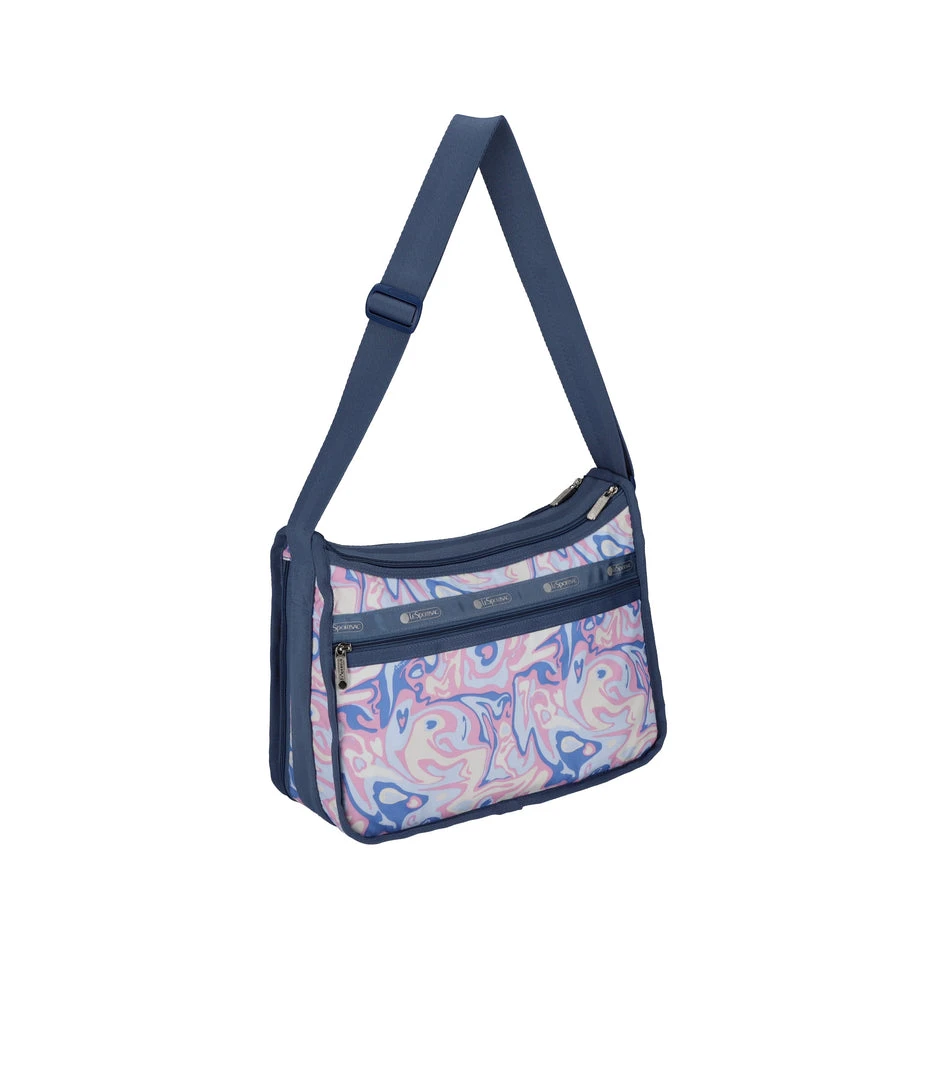 Two main compartments with zipped closures, Zip out expandable front main compartment, Exterior back pocket with zipped closure, Two exterior front pockets with zipped closures, Adjustable shoulder strap (Max. 52in/132cm), Includes matching pouch with zipped closure