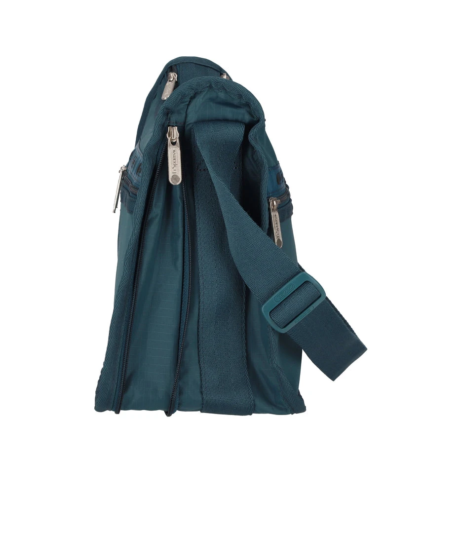 Two main compartments with zipped closures, Zip out expandable front main compartment, Exterior back pocket with zipped closure, Two exterior front pockets with zipped closures, Adjustable shoulder strap (Max. 52in/132cm), Includes matching pouch with zipped closure
