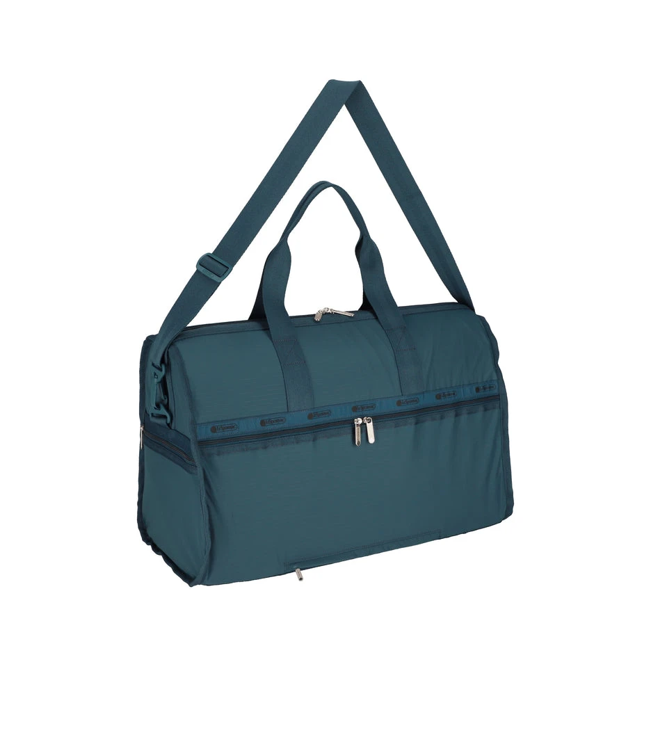 Zip main closure with dual zipper pulls, 8.5in (21.59cm) Top handle drop, 1.5in (3.81cm) Wide adjustable/detachable crossbody strap (Max. 42in/106.68cm), Exterior front panel zipper pocket, Exterior back panel zip closure pocket with dual zipper pulls and a bottom zipper to convert pocket into a sleeve (to slide over rolling luggage handles), Two exterior side pockets with zip closures, Three interior front wall open pockets, Interior back wall combination zip/open pocket