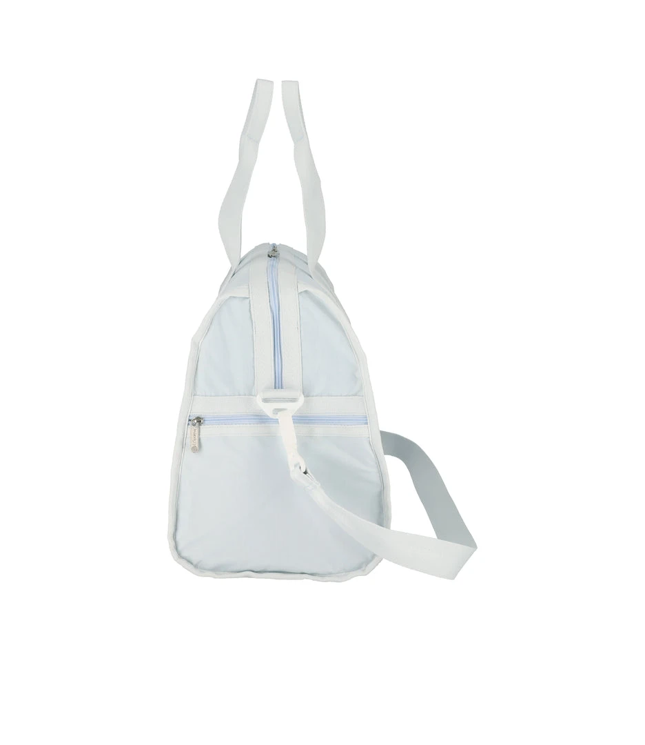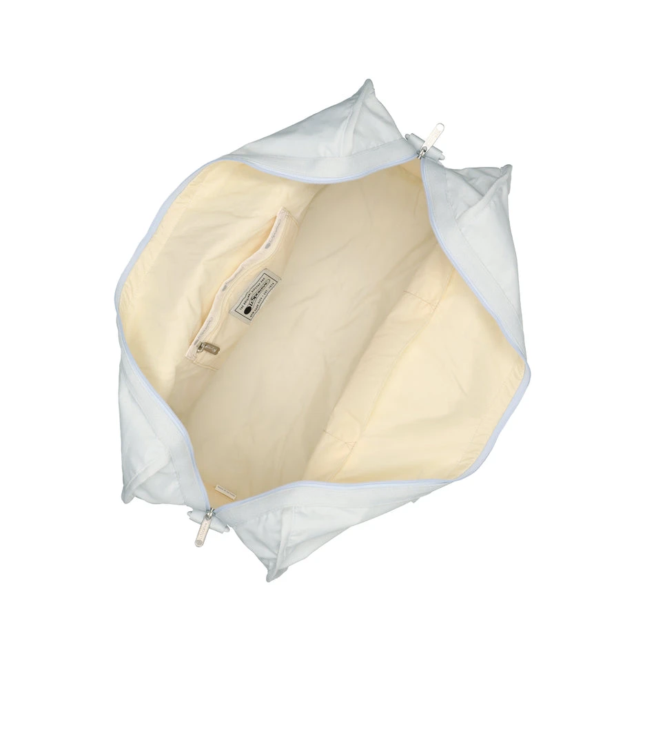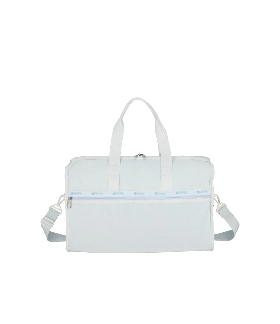 Zip main closure with dual zipper pulls, 8.5in (21.59cm) Top handle drop, 1.5in (3.81cm) Wide adjustable/detachable crossbody strap (Max. 42in/106.68cm), Exterior front panel zipper pocket, Exterior back panel zip closure pocket with dual zipper pulls and a bottom zipper to convert pocket into a sleeve (to slide over rolling luggage handles), Two exterior side pockets with zip closures, Three interior front wall open pockets, Interior back wall combination zip/open pocket