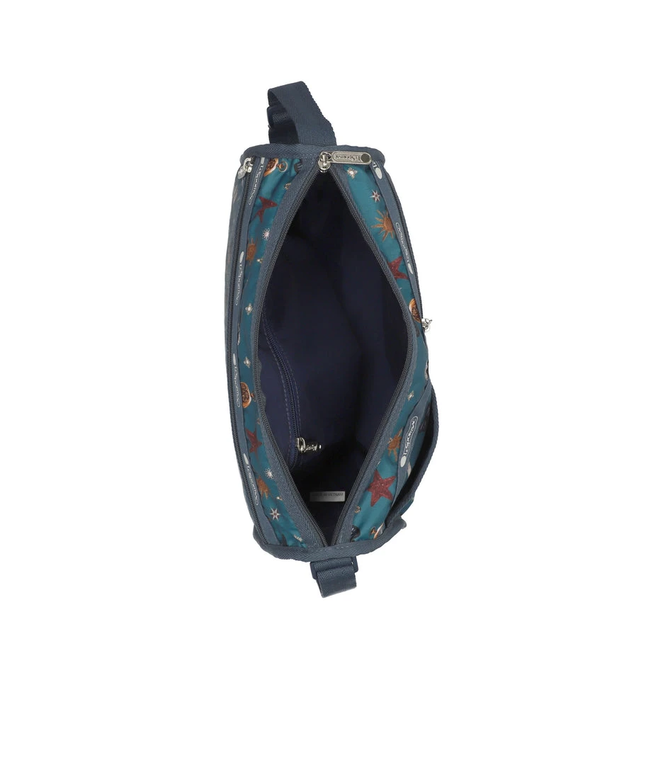 Zipped main closure, Exterior front open pocket, Exterior front pocket with zipped closure, Exterior back pocket with zipped closure, Two exterior open side pockets, Adjustable shoulder strap (Max. 52in/132cm), Interior pocket with zipped closure, Includes matching pouch with zipped closure7.5 x 11.75 x 5 in, 19.05 x 29.85 x 12.7 cm