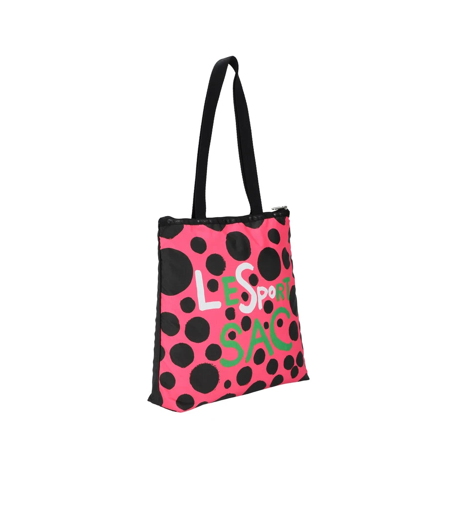 Zipped main closure, 1in (2.5cm) wide top handles (Length: 24.6 in/62.5 cm), Interior back wall combination zip/open pocket
