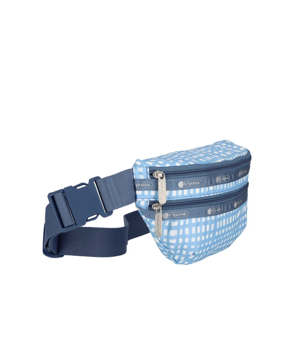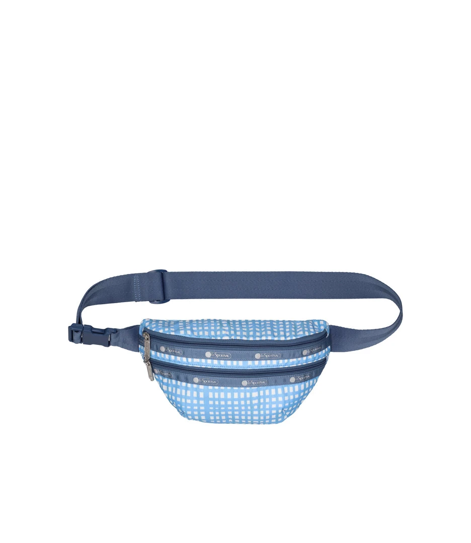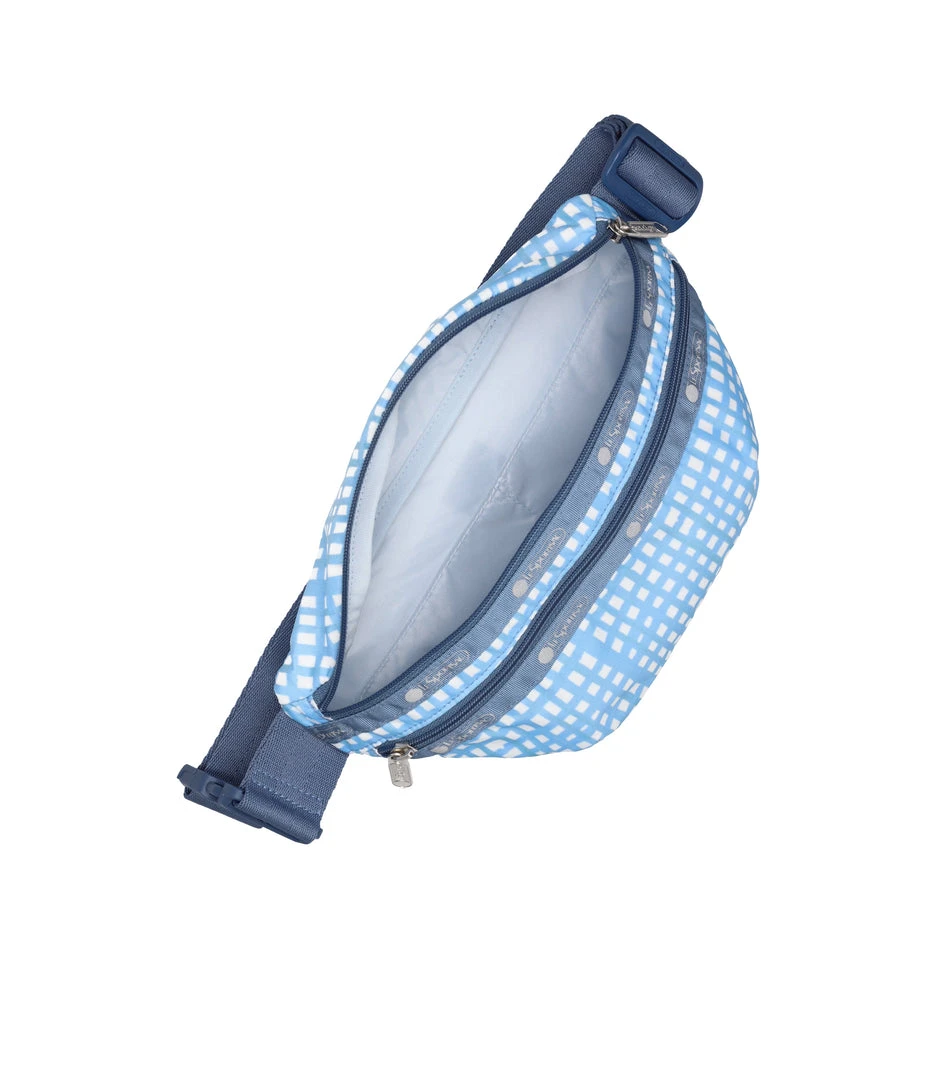 Zip main closure, Exterior front zip pocket, Two interior back wall open pockets, 1.5in/3.8cm wide adjustable belt strap (Max length: 45.27 in/115 cm, Min length 30.7 in/78 cm)