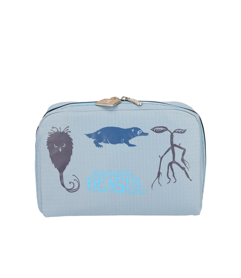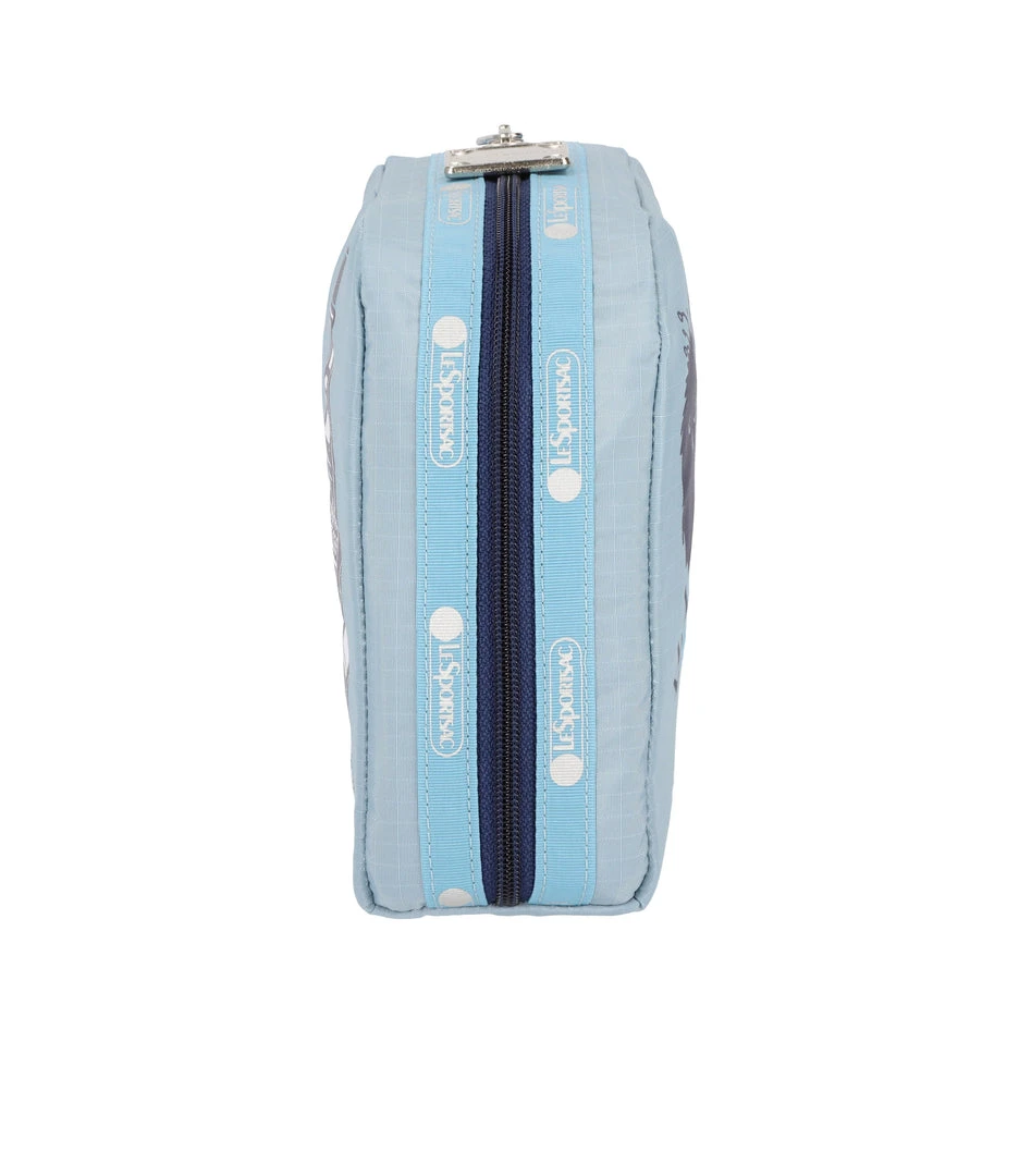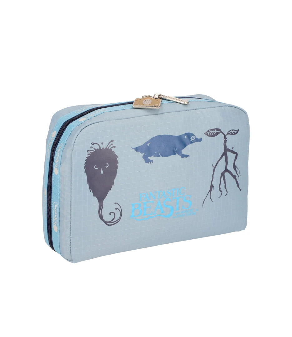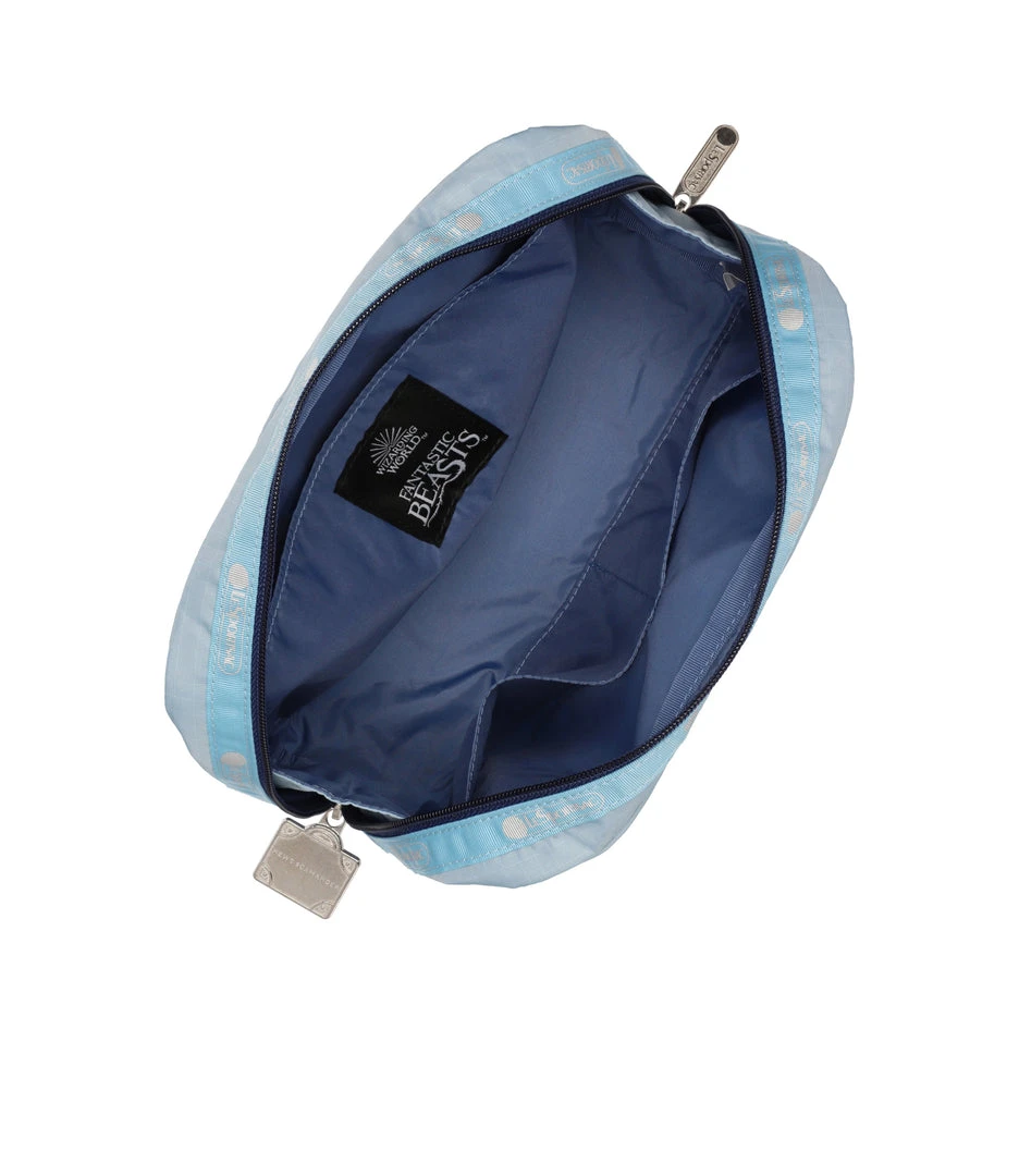 Zip main closure with dual zipper pulls, Interior front wall open pocket, Two interior back wall open pockets
