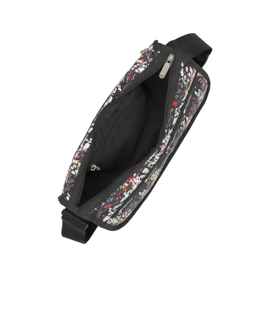 Zipped main closure, Exterior front pocket with zipped closure, Exterior back pocket with zipped closure, Interior back wall hanging zipper pocket, Adjustable shoulder strap (Max. 50in / 127cm), Includes matching pouch with zipped closure