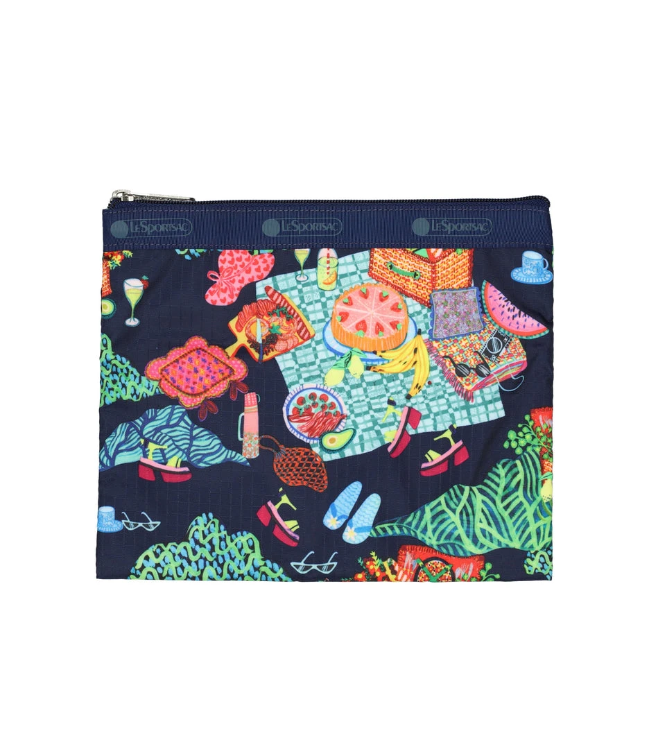 Two main compartments with zipped closures, Zip out expandable front main compartment, Exterior back pocket with zipped closure, Two exterior front pockets with zipped closures, Adjustable shoulder strap (Max. 52in/132cm), Includes matching pouch with zipped closure