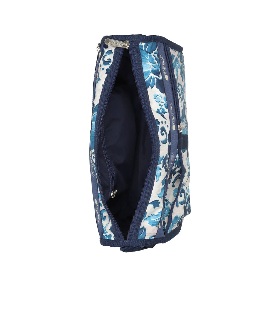 Zipped main closure, Exterior front open pocket, Exterior front pocket with zipped closure, Exterior back pocket with zipped closure, Two exterior open side pockets, Adjustable shoulder strap (Max. 52in/132cm), Interior pocket with zipped closure, Includes matching pouch with zipped closure