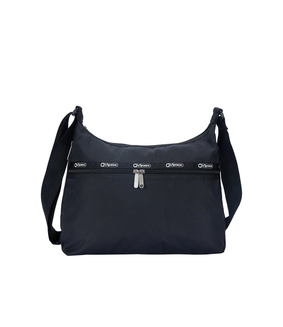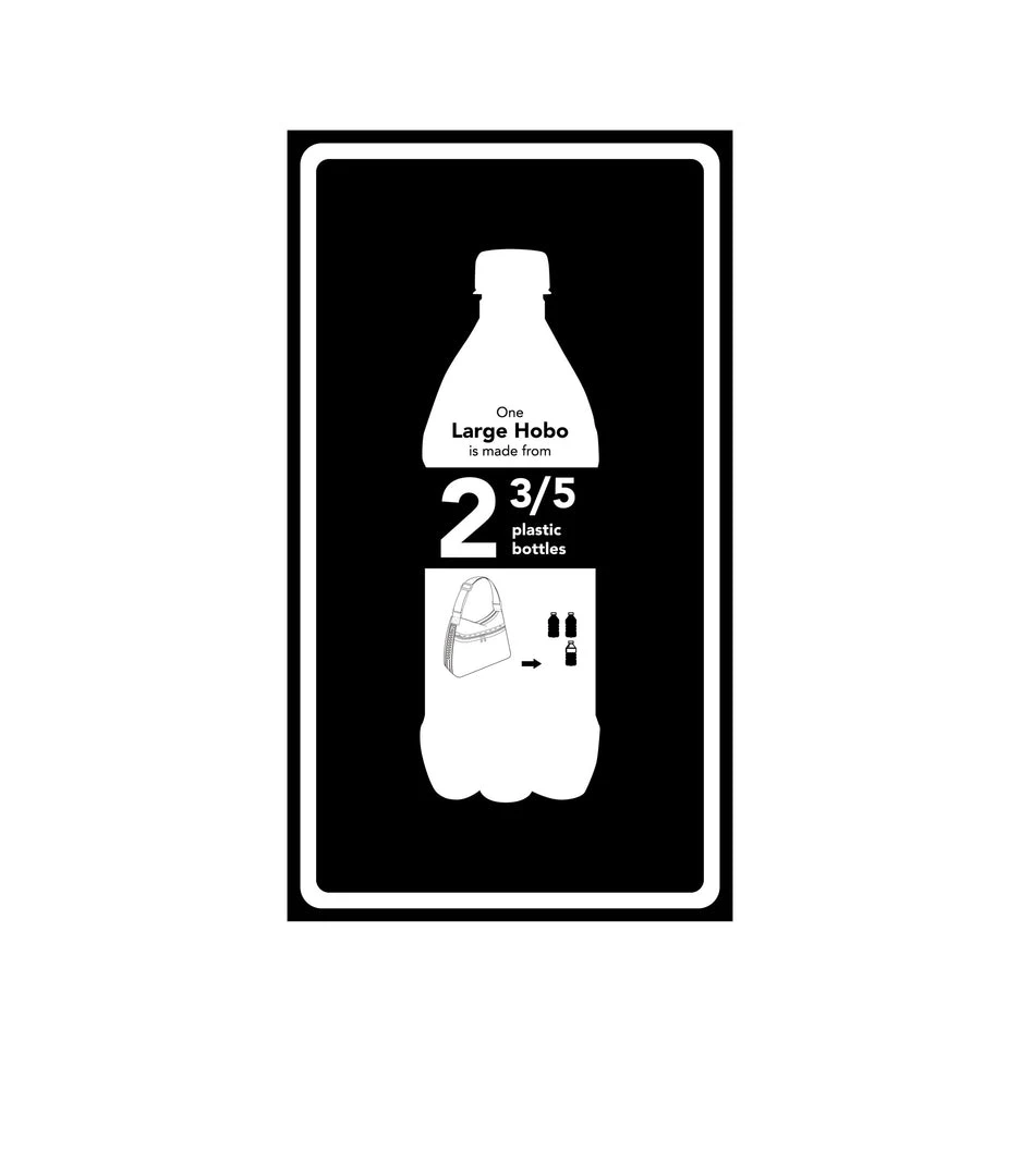 Made using 2.6 recycled plastic bottles, Zip main closure, Exterior front pocket with dual zip closure, Exterior back open pocket with magnetic snap closure, Two interior front wall open pockets, Interior back combination zip/open pocket with key loop on top of large open pocket, 1.5 in/3.8cm wide adjustable shoulder strap (Max length: 26.2 in/66.5 cm, Min length: 16.7 in/ 42.5 cm)
