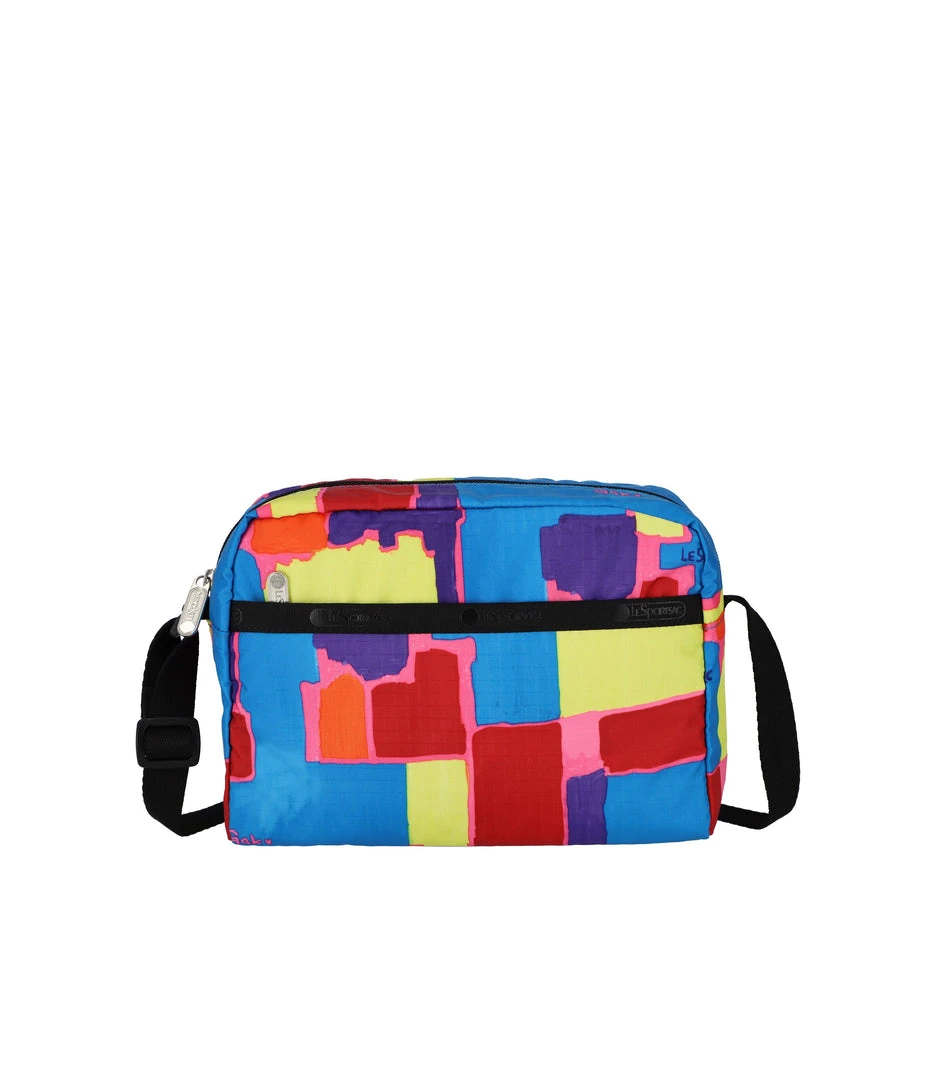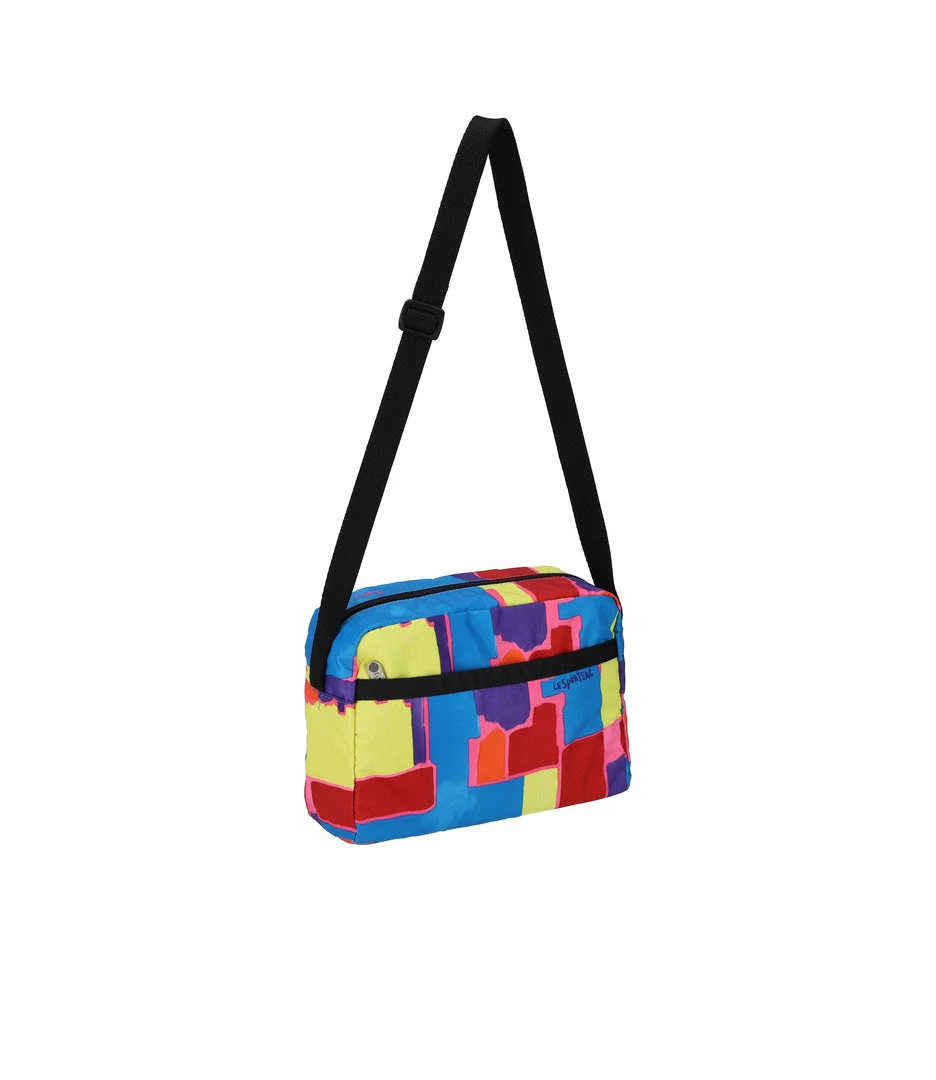 Zip top main closure, Exterior front pocket with zip closure, Exterior back pocket with zip closure, Adjustable crossbody strap (52in/132.08cm), Two interior back wall open pockets, Plastic hardware