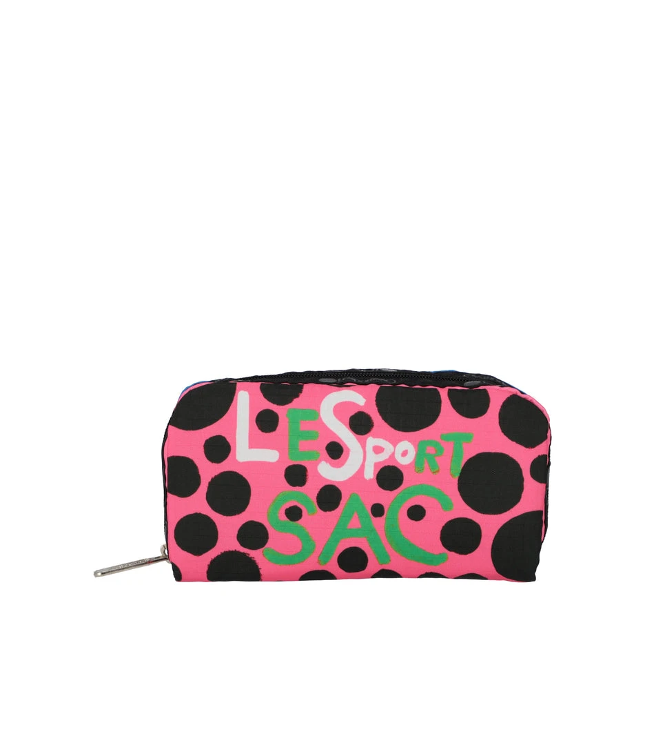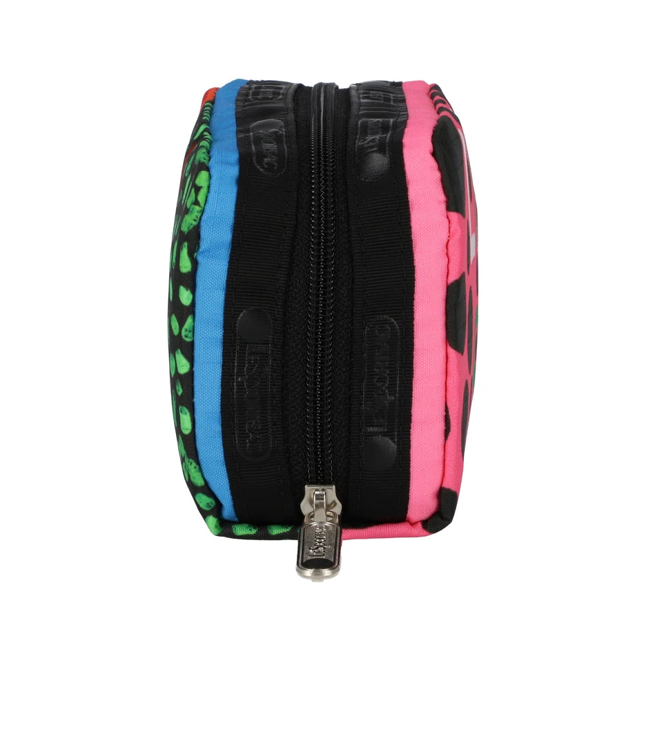 Zipped main closure, Interior back wall open pocket, Two interior front wall open pockets