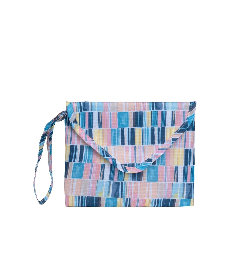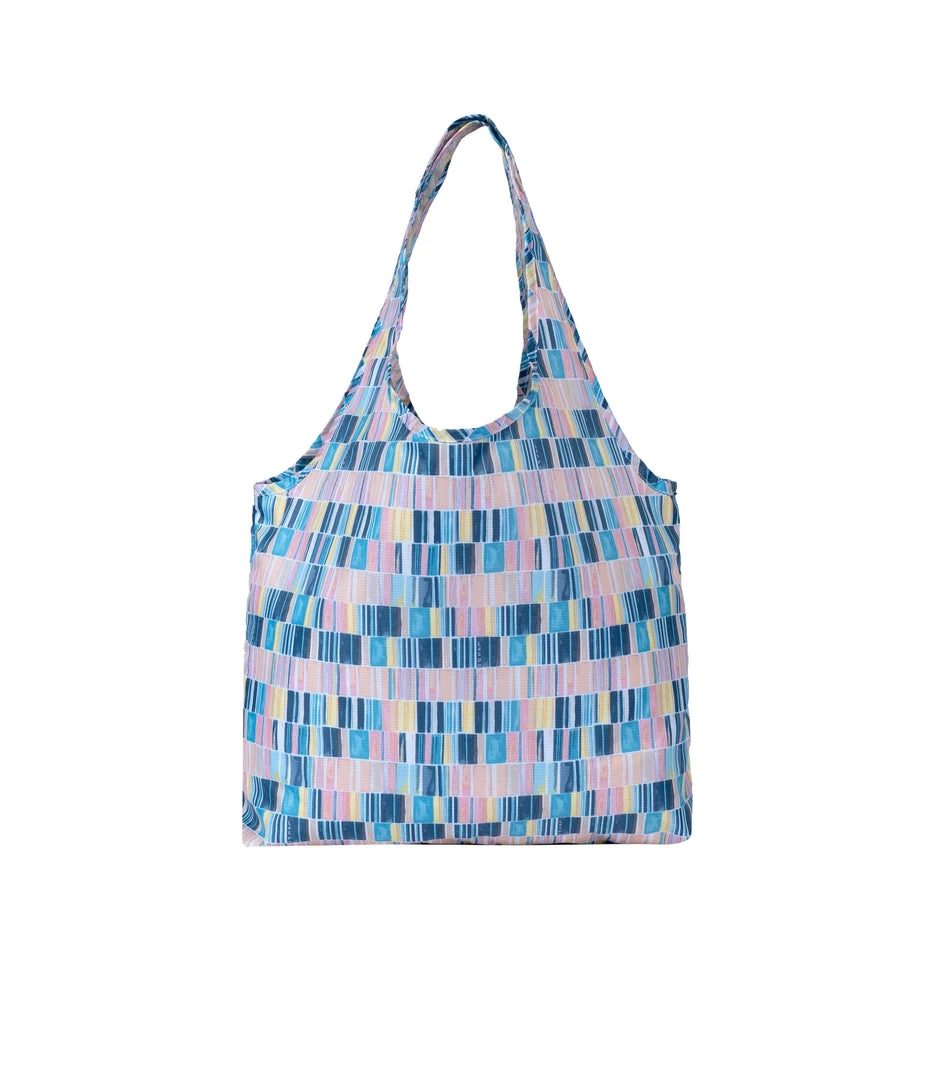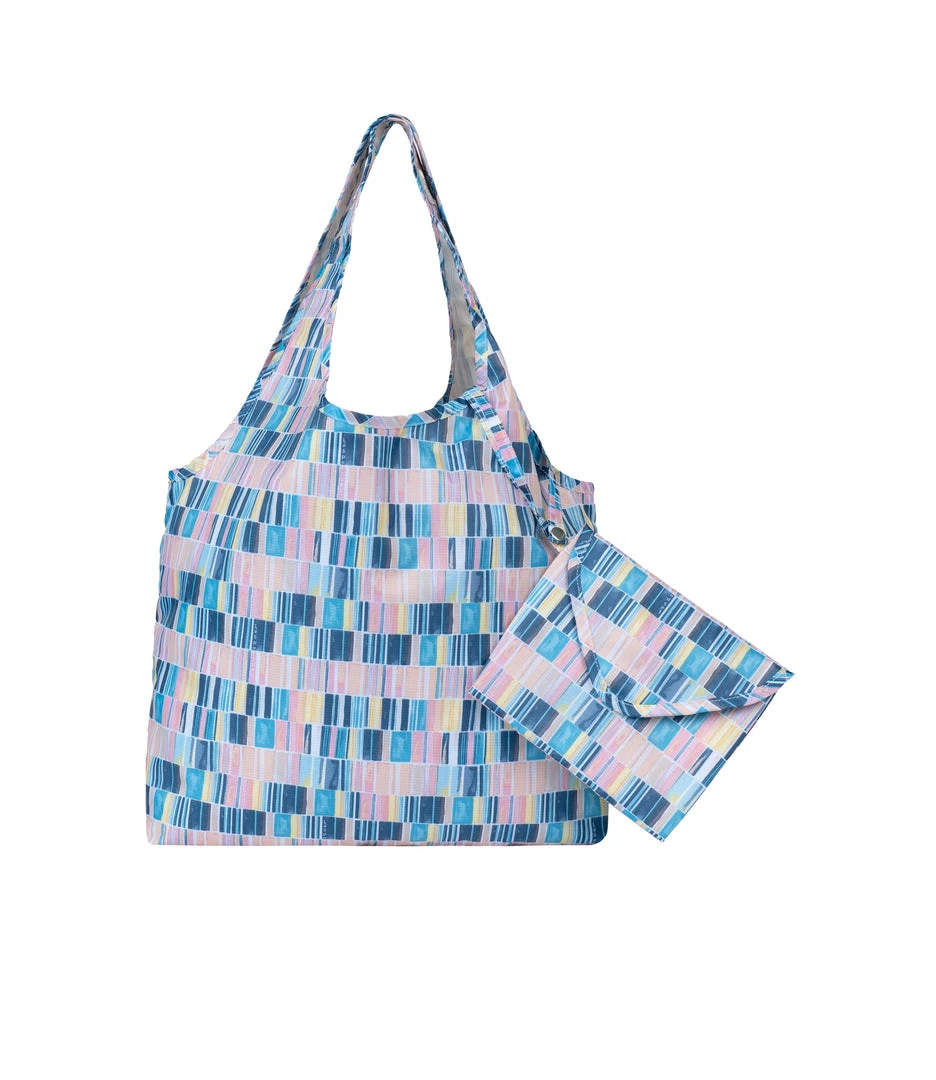 Lightweight tote that folds into a detachable wristlet pouch for easy on-the-go portability!