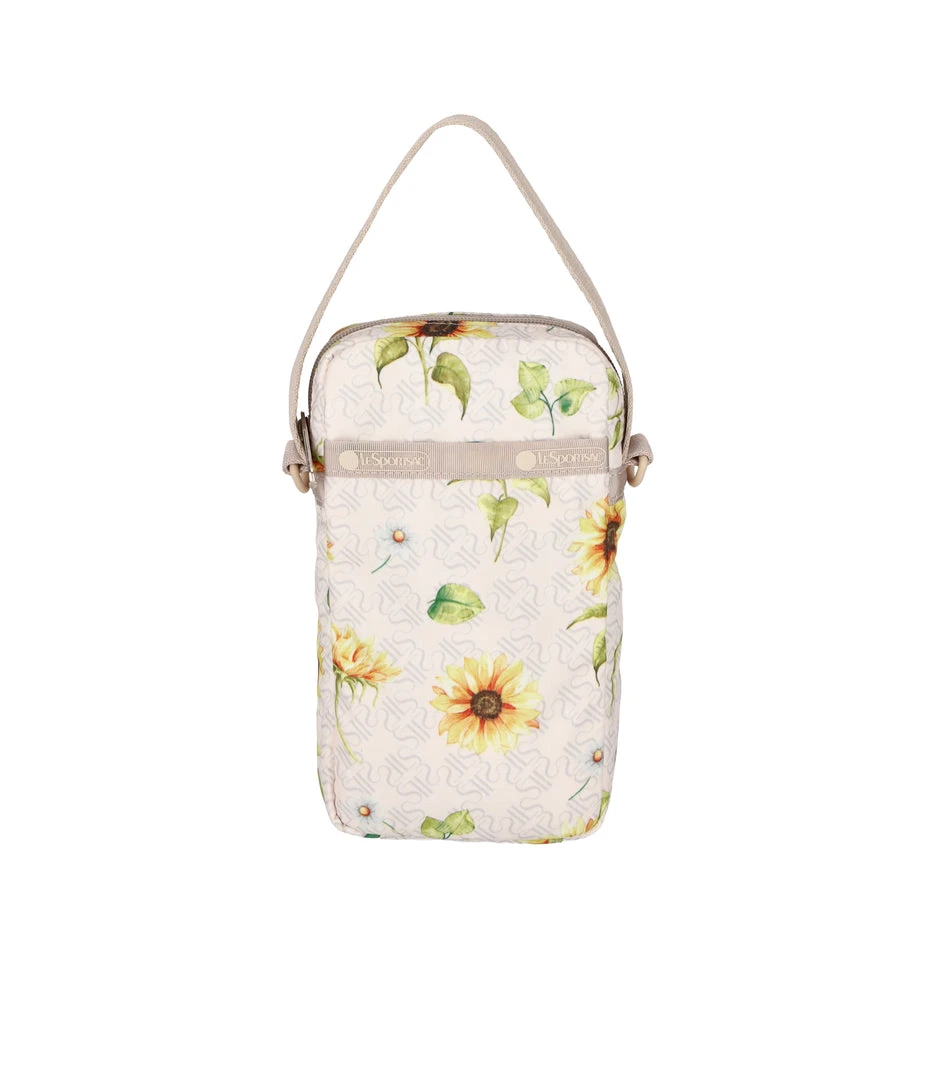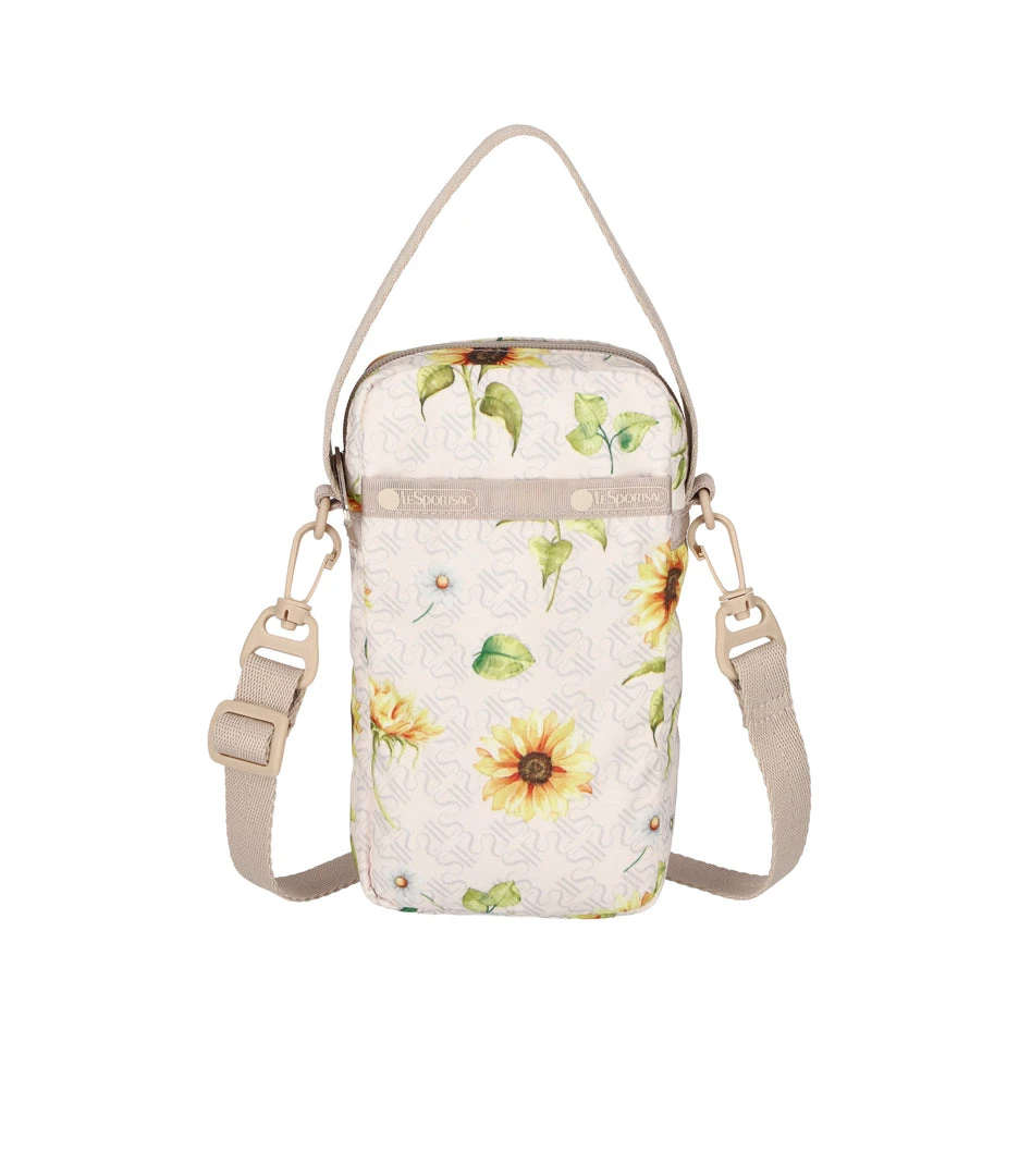 Zip top main closure, Exterior front and back open pockets, 0.75 inch wide top handle (Length: 12.4 in/31.5 cm), 1in (2.5cm) wide adjustable/detachable crossbody strap (Max length 44.2in/112.3cm), Interior back wall open pocket