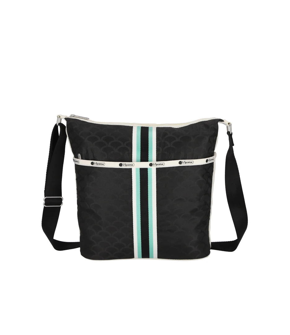 Zipped main closure, Exterior front zip pocket, Exterior back open pocket. Interior front wall open pocket, Interior back wall zip pocket, 1.5in/3.8cm wide webbing adjustable strap (Longest Length: 52.36 in/133 cm, Shortest Length: 28.74in/ 73cm)