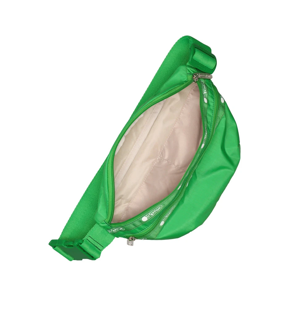 Zip main closure, Exterior front zip pocket, Two interior back wall open pockets, 1.5in/3.8cm wide adjustable belt strap (Max length: 45.27 in/115 cm, Min length 30.7 in/78 cm)
