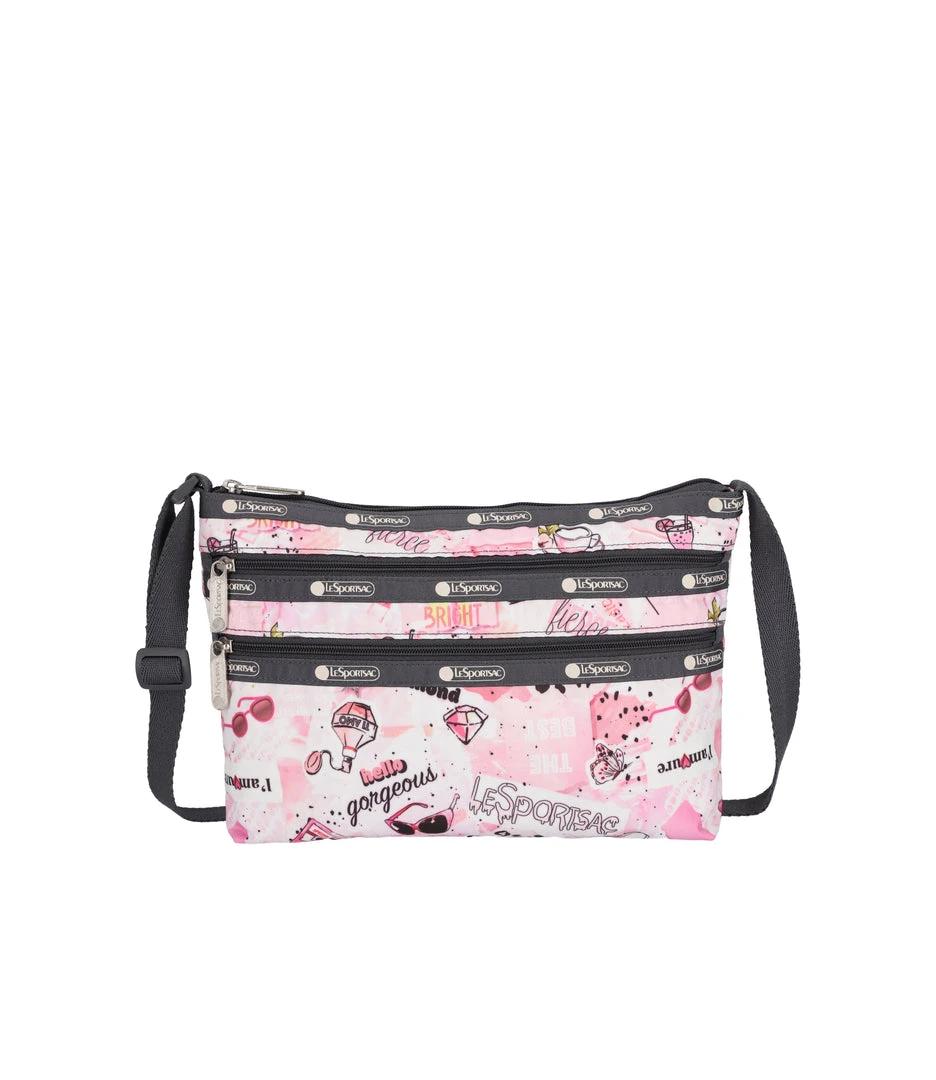 Zip main closure, Two exterior front pockets with zip closures, Adjustable crossbody strap (Max. 50.25in / 127.64cm), Two interior back wall open pockets