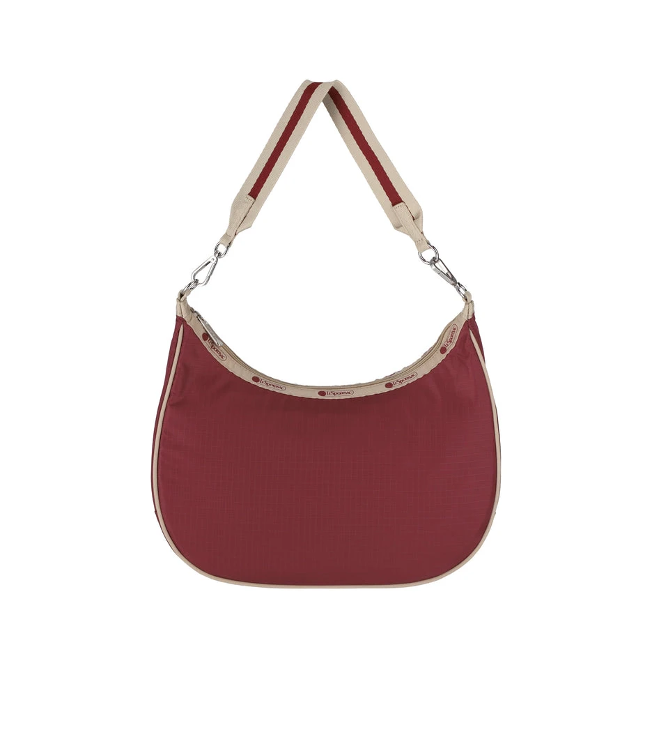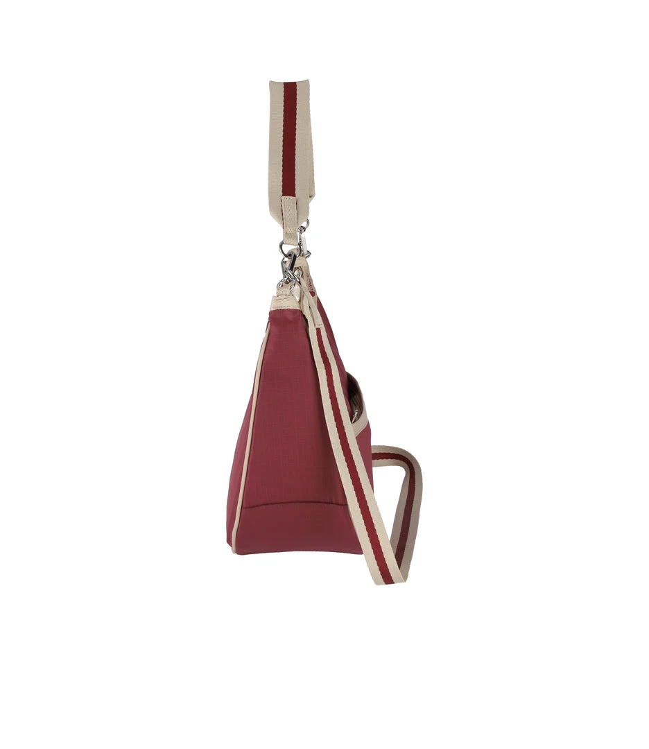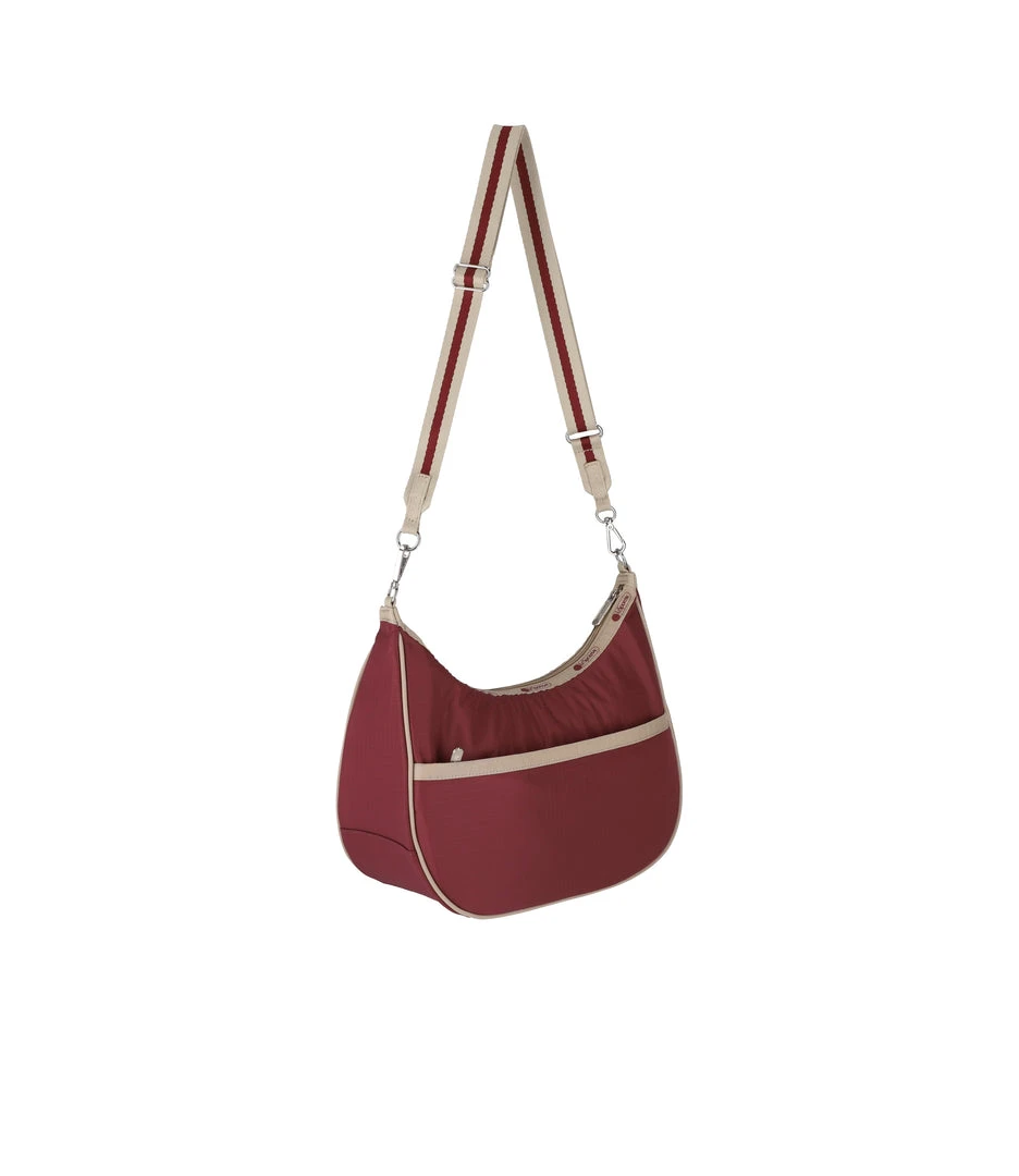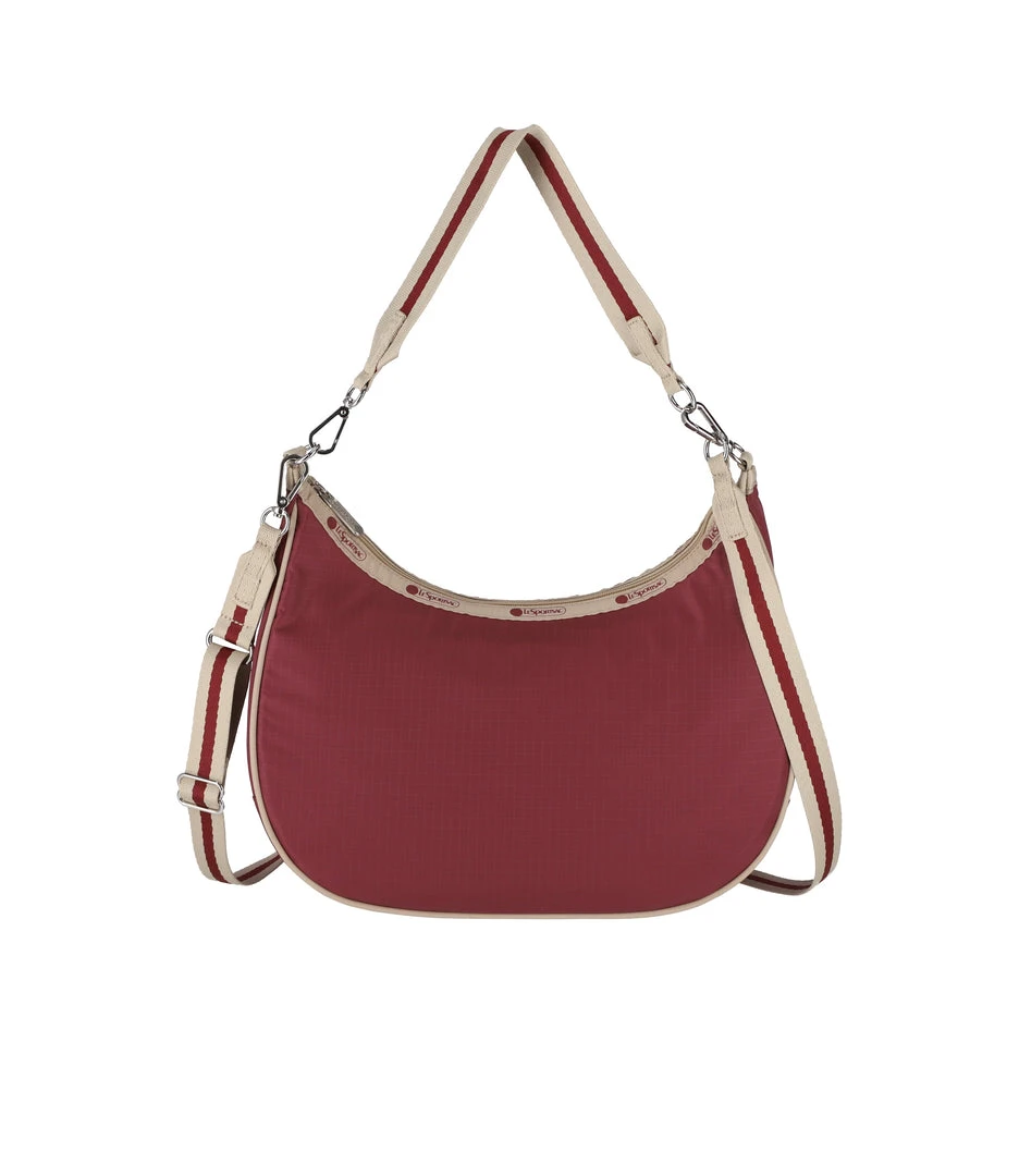 Zip top main closure, Exterior back pocket with zip closure, Interior front wall open pocket, Interior back wall combination zip/open pocket, Two detachable strap options:Â Short Strap – 1.5in/3.8cm wide non-adjustable strap (with a drop of 5.75in/14.6 cm and a length of 17.75in/45 cm) and Long Strap – 1in/2.5cm wide adjustable/detachable crossbody strap (min length: 24.8 in/63 cm and max length: 42.5 in/108 cm, ), Metal hardware