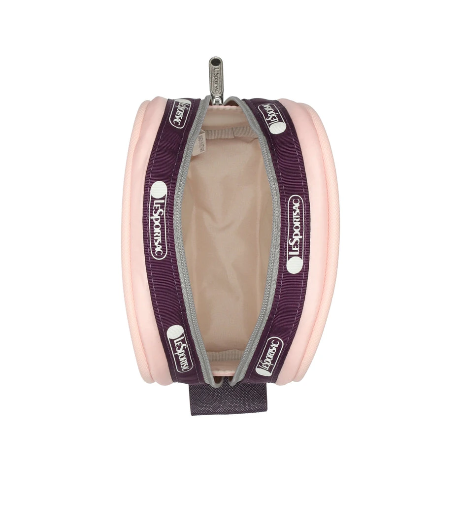 Zipped main closure, Inside gusset for easy opening, Metal hardware, Vegan-leather trim details, Piped edges for added structure