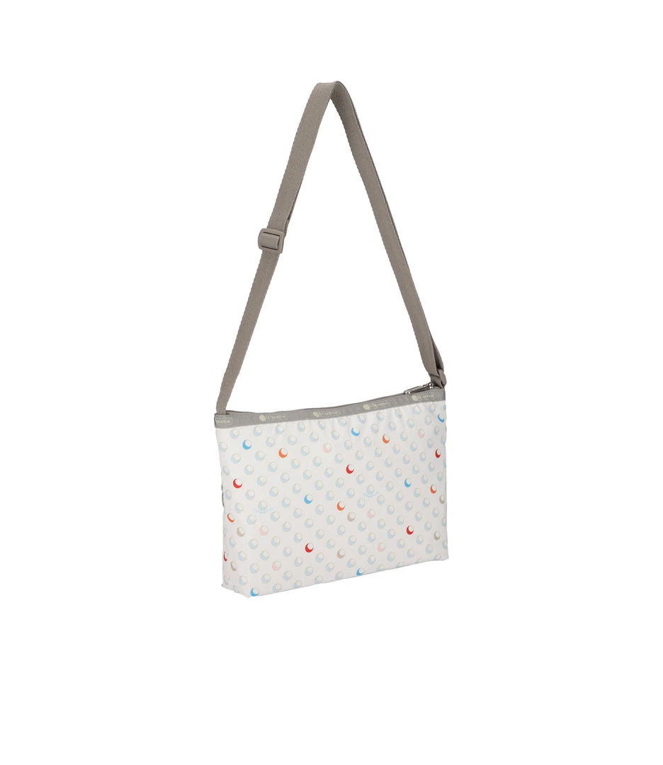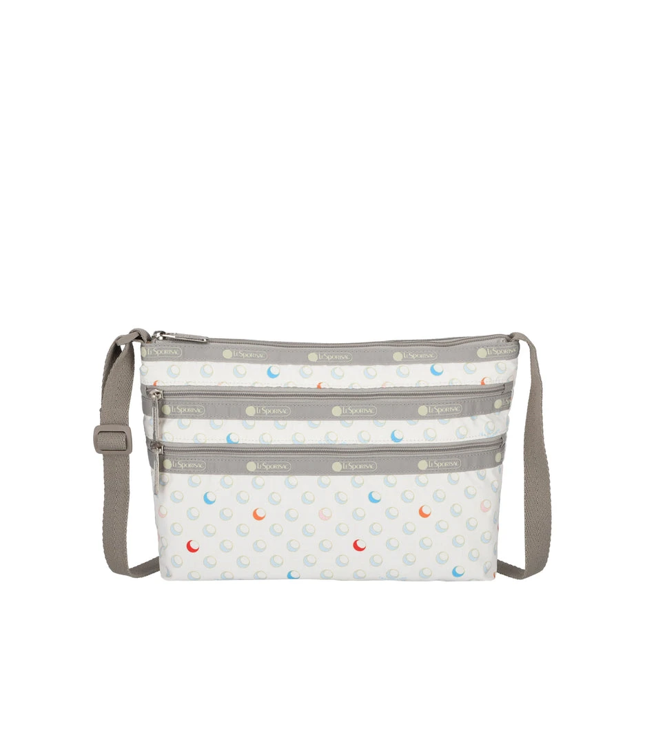 Zip main closure, Two exterior front pockets with zip closures, Adjustable crossbody strap (Max. 50.25in / 127.64cm), Two interior back wall open pockets