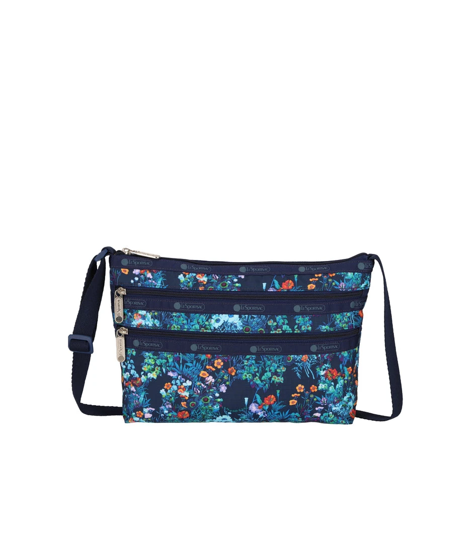 Zip main closure, Two exterior front pockets with zip closures, Adjustable crossbody strap (Max. 50.25in / 127.64cm), Two interior back wall open pockets