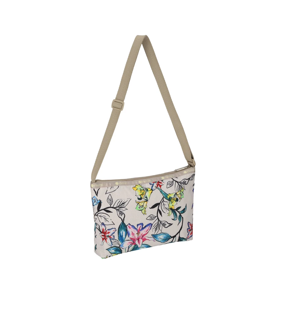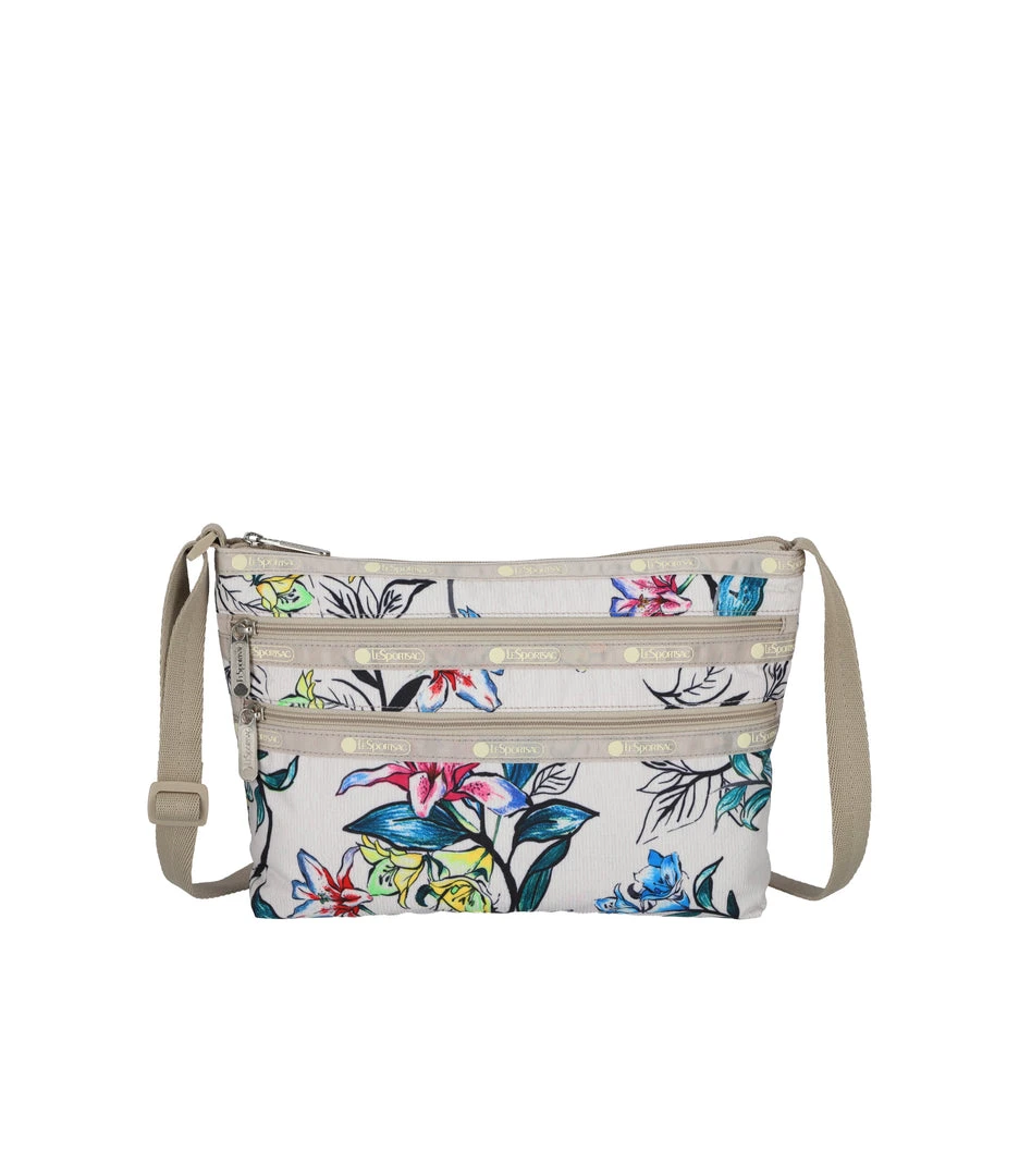 Zip main closure, Two exterior front pockets with zip closures, Adjustable crossbody strap (Max. 50.25in / 127.64cm), Two interior back wall open pockets
