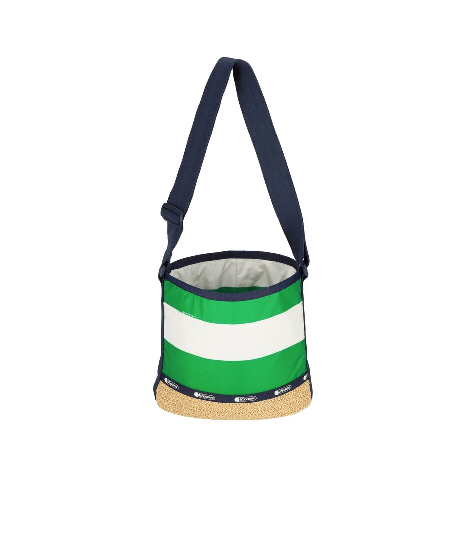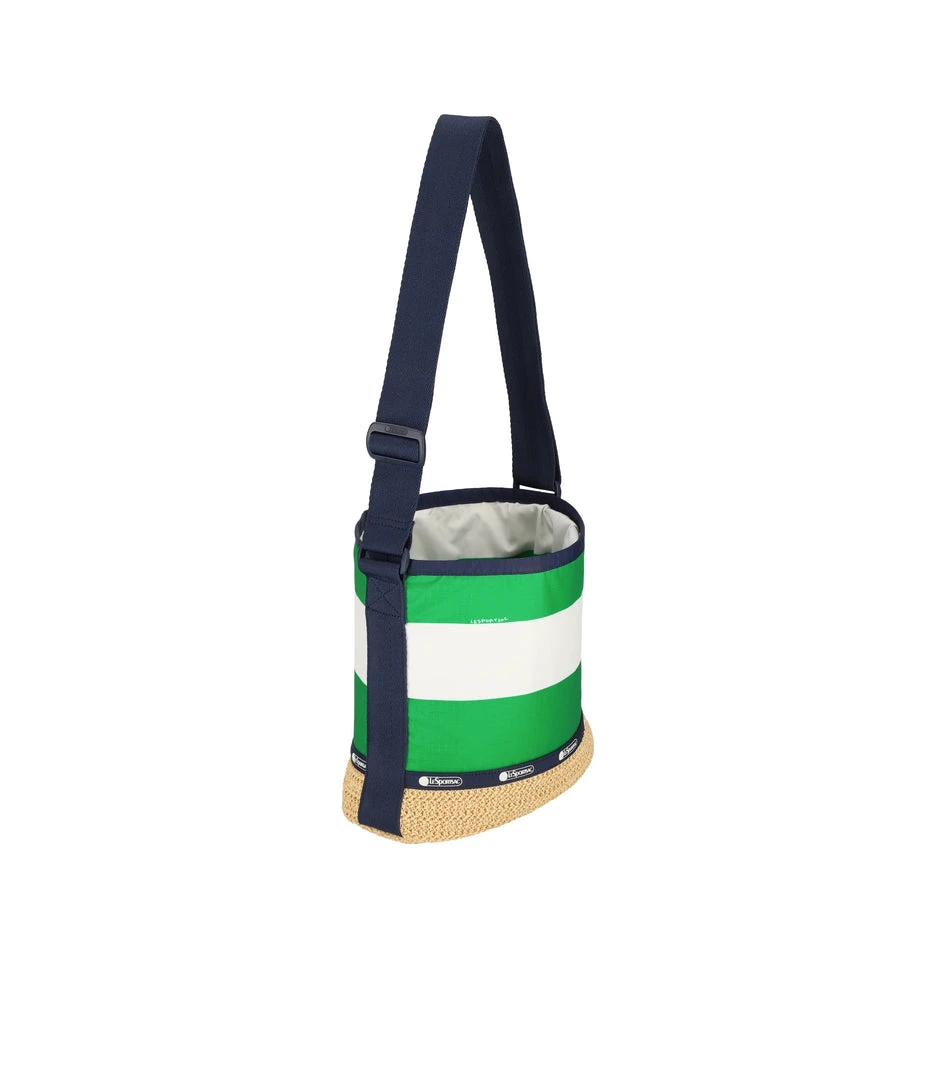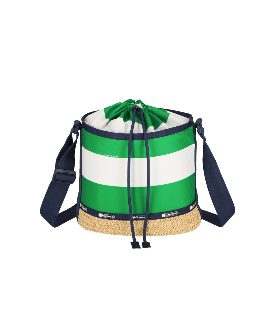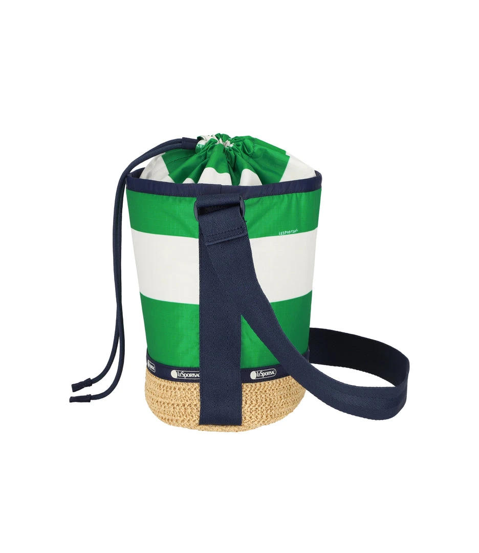 Features straw construction on the lower half of the bag. Please spot clean only, as continuous washing or rough treatment may cause damage.