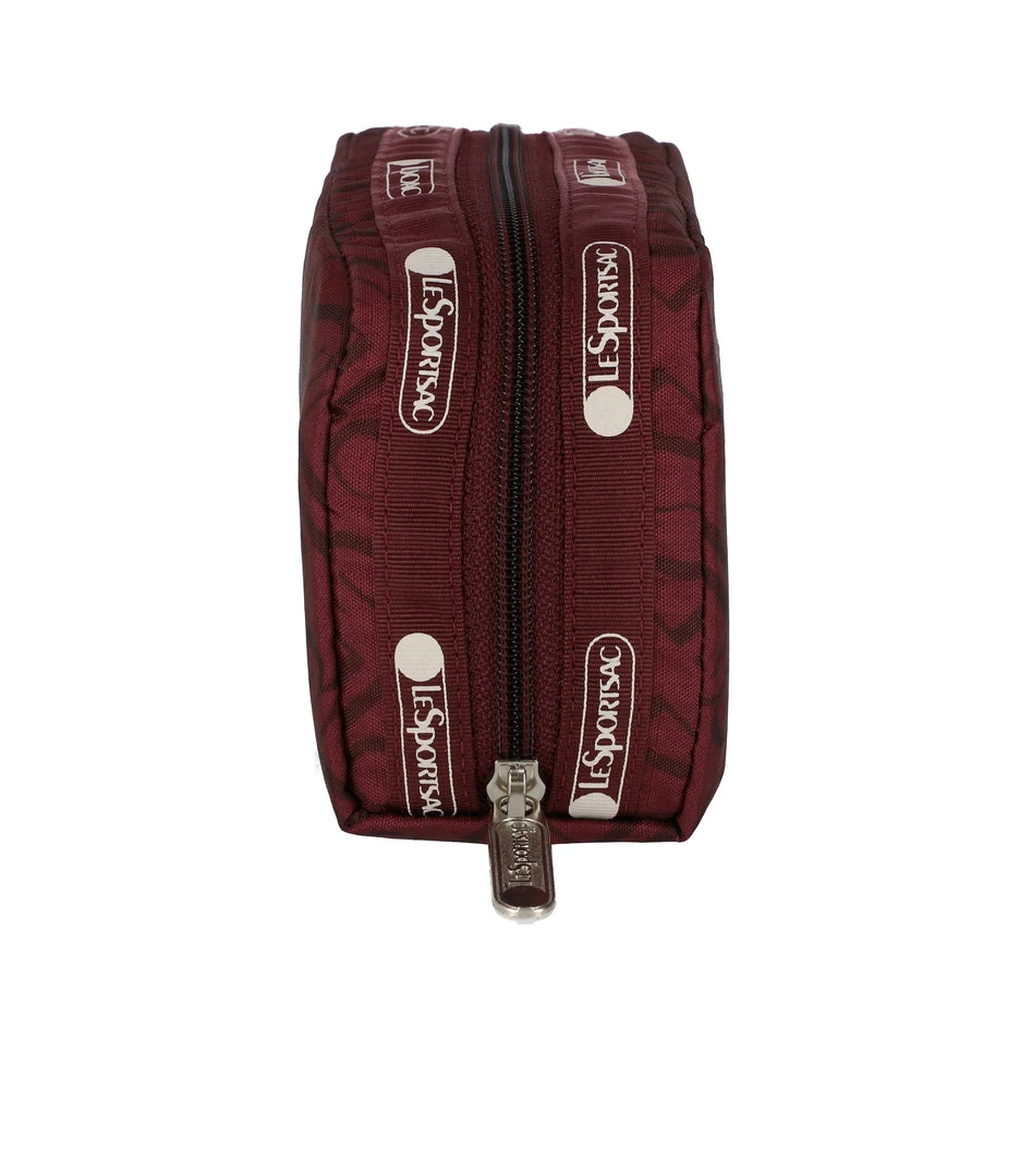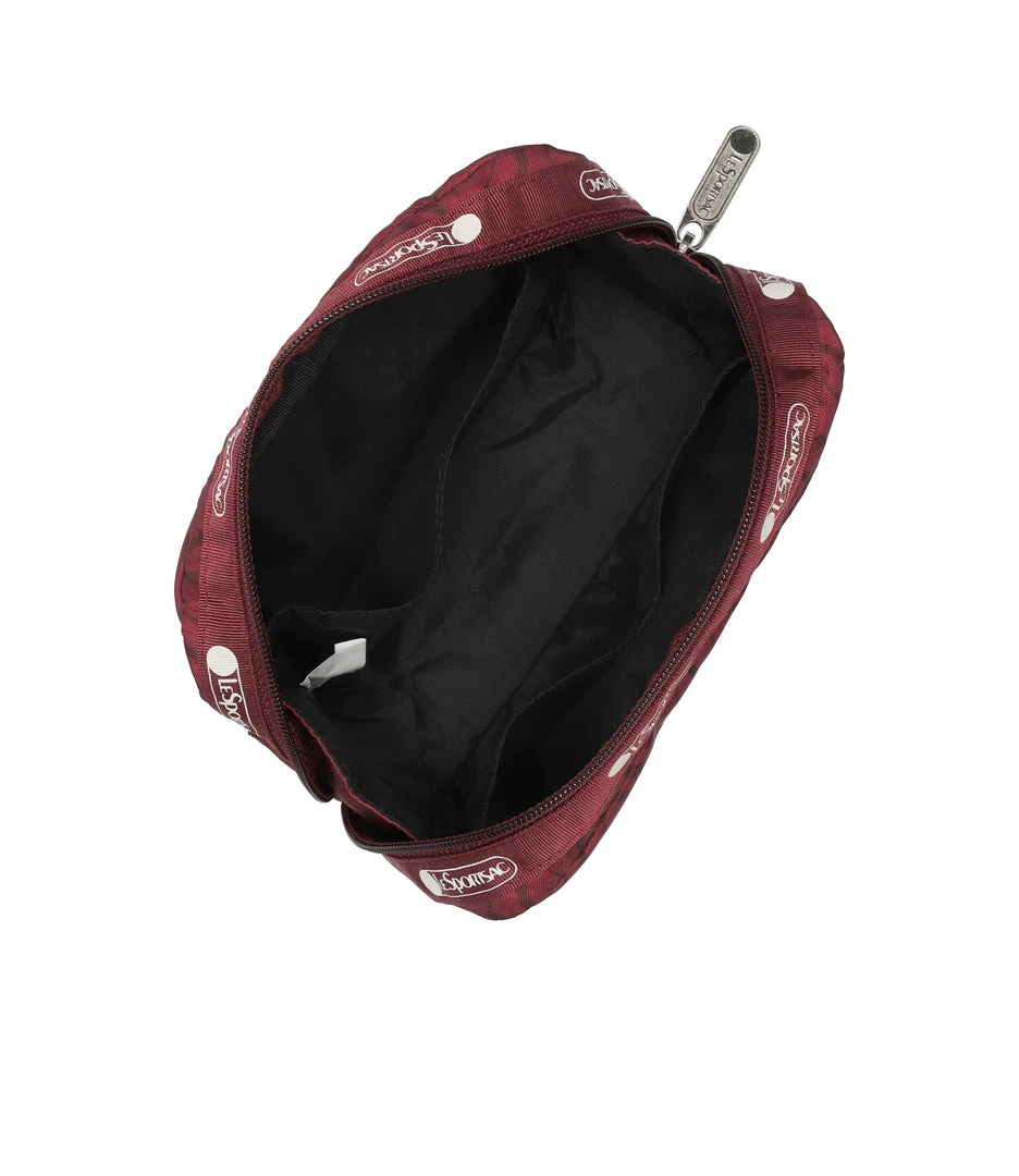 Zipped main closure, Interior back wall open pocket, Two interior front wall open pockets