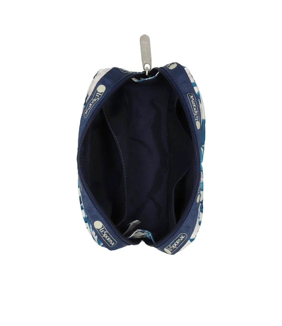 Zipped main closure, Interior back wall open pocket, Two interior front wall open pockets