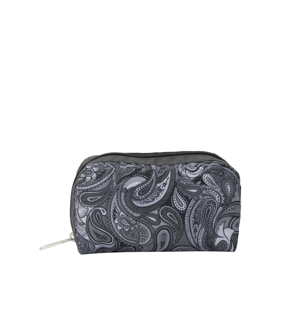 Zipped main closure, Interior back wall open pocket, Two interior front wall open pockets