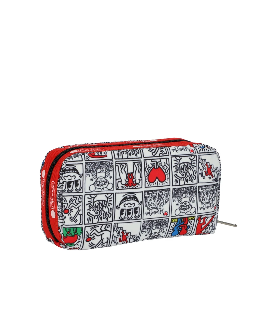 Zipped main closure, Interior back wall open pocket, Two interior front wall open pockets