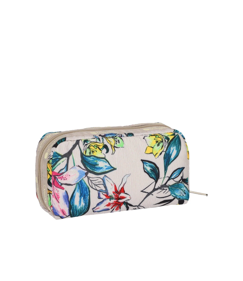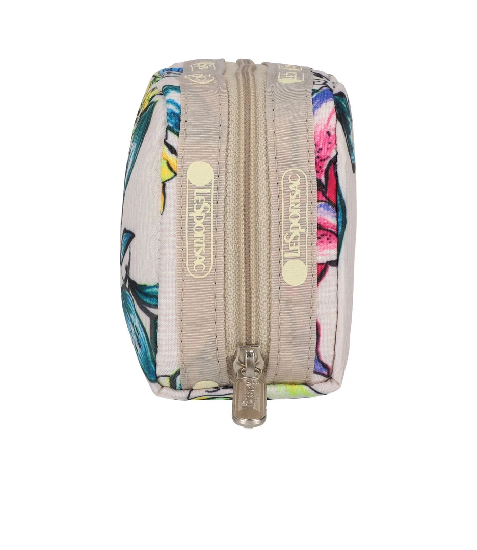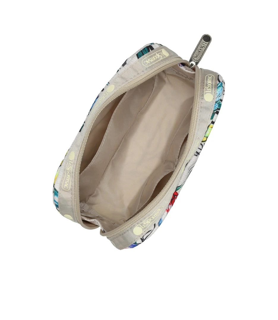 Zipped main closure, Interior back wall open pocket, Two interior front wall open pockets