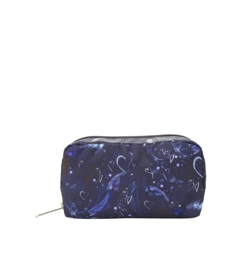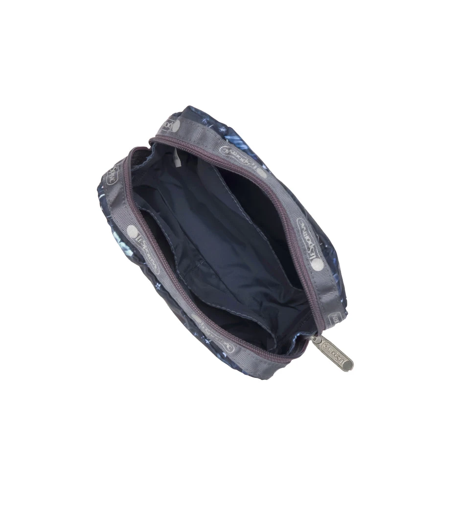Zipped main closure, Interior back wall open pocket, Two interior front wall open pockets