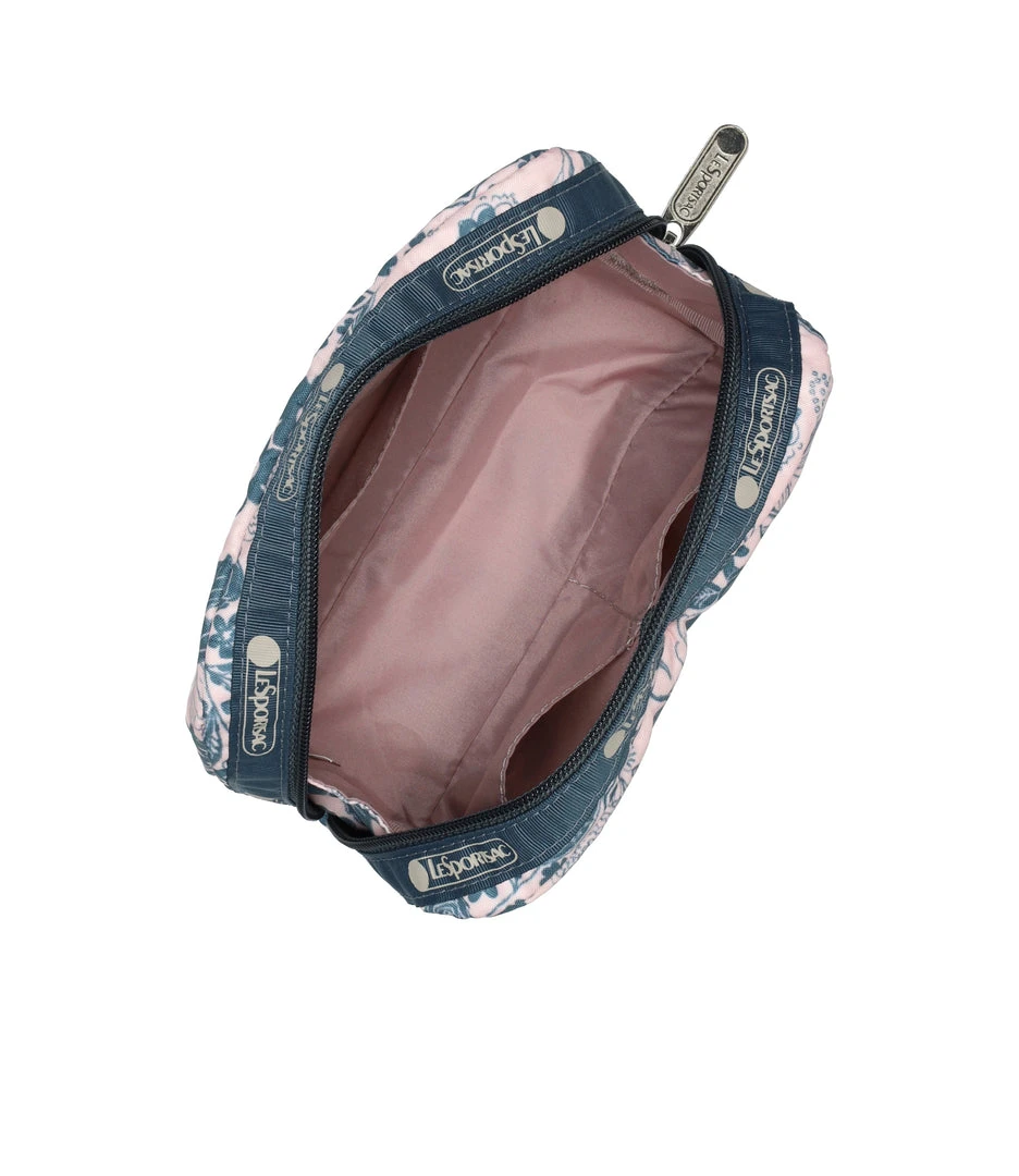 Zipped main closure, Interior back wall open pocket, Two interior front wall open pockets