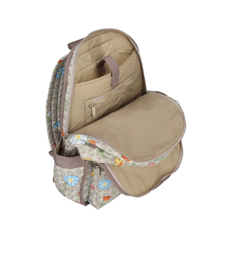 Features two zip closure compartments with dual zipper pulls, 1in/2.5cm top loop handle (Drop: 2.2in/5.5cm), Padded shoulder straps (Length: 18.5in/47cm), Exterior front zip closure pocket, Exterior back panel features a zip closure cell phone pocket on the side, Two exterior side open top pockets, Interior of front compartment features two open pockets on the interior back wall, Interior of back compartment features a laptop pocket with Velcro tab closure (for 13in laptops) and a combination zip/open pocket (on front of the laptop pocket)