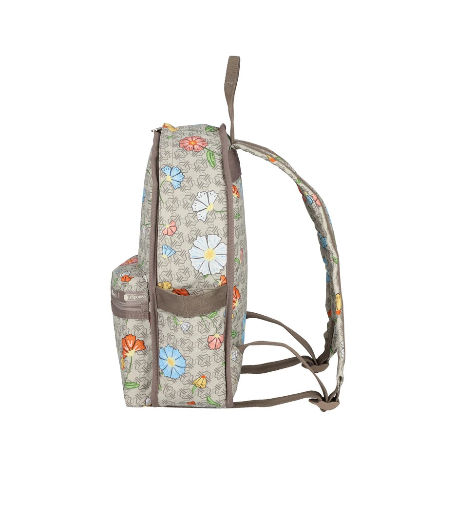 Zip main closure with dual zipper pulls, Exterior front zip closure pocket, Exterior top back open pocket (behind the shoulder straps), Interior back wall open pocket, 1in/2.5cm wide top handle (Drop: 3 in/7.5cm, Length: 10.43 in/26.5 cm), 1in/2.5cm wide adjustable shoulder straps (Max length: 28 in/71 cm)