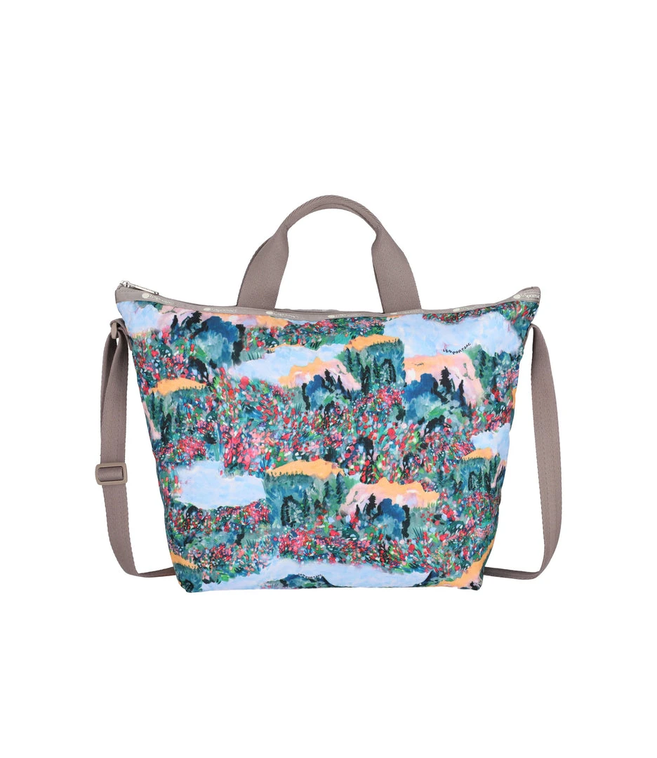 Zip top main closure, 5in (12.7cm) Top handle drop, Adjustable crossbody strap (1.5in/3.81cm wide with a maximum extension of 52in/132cm), Exterior back panel pocket with zip closure, Two interior front wall open pockets, Interior back wall open pocket