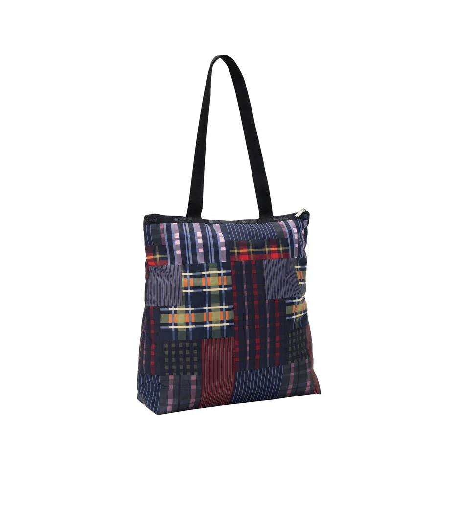 Zipped main closure, 1in (2.5cm) wide top handles (Length: 24.6 in/62.5 cm), Interior back wall combination zip/open pocket