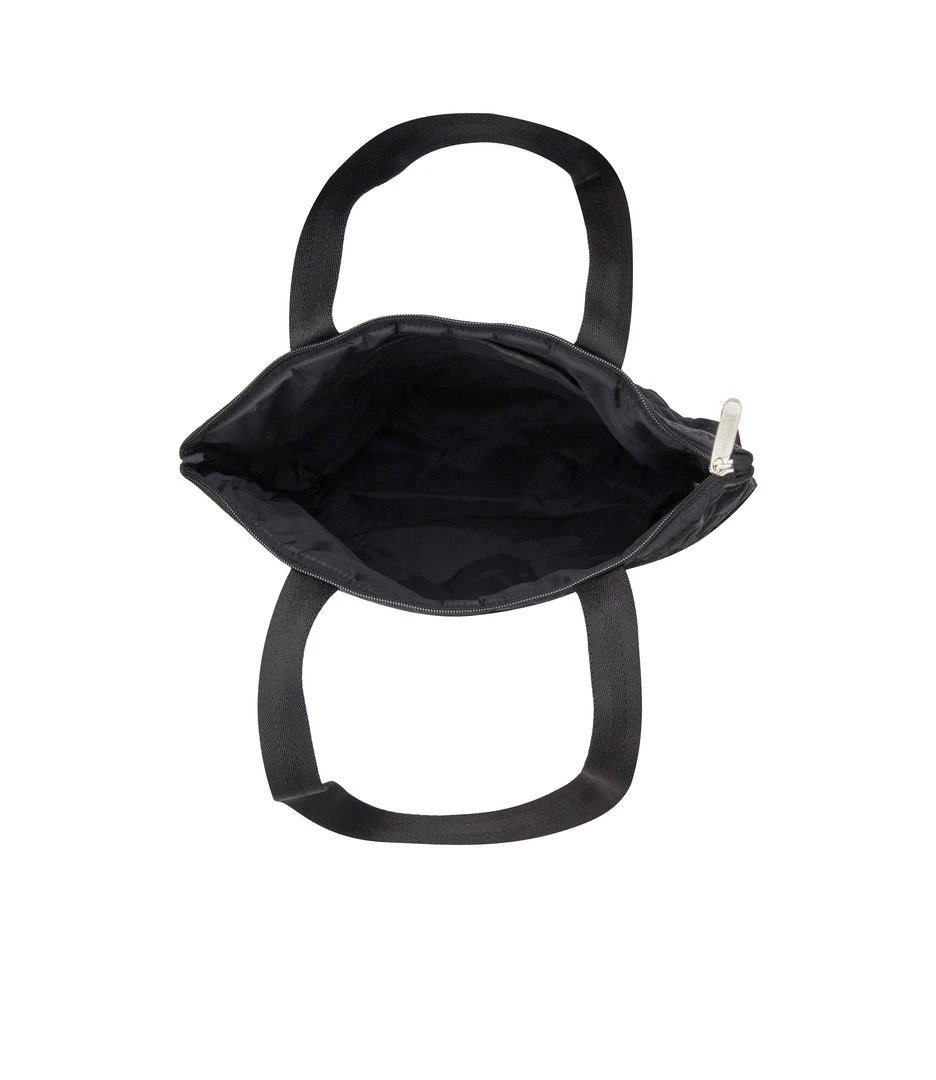 Zipped main closure, 1in (2.5cm) wide top handles (Length: 24.6 in/62.5 cm), Interior back wall combination zip/open pocket