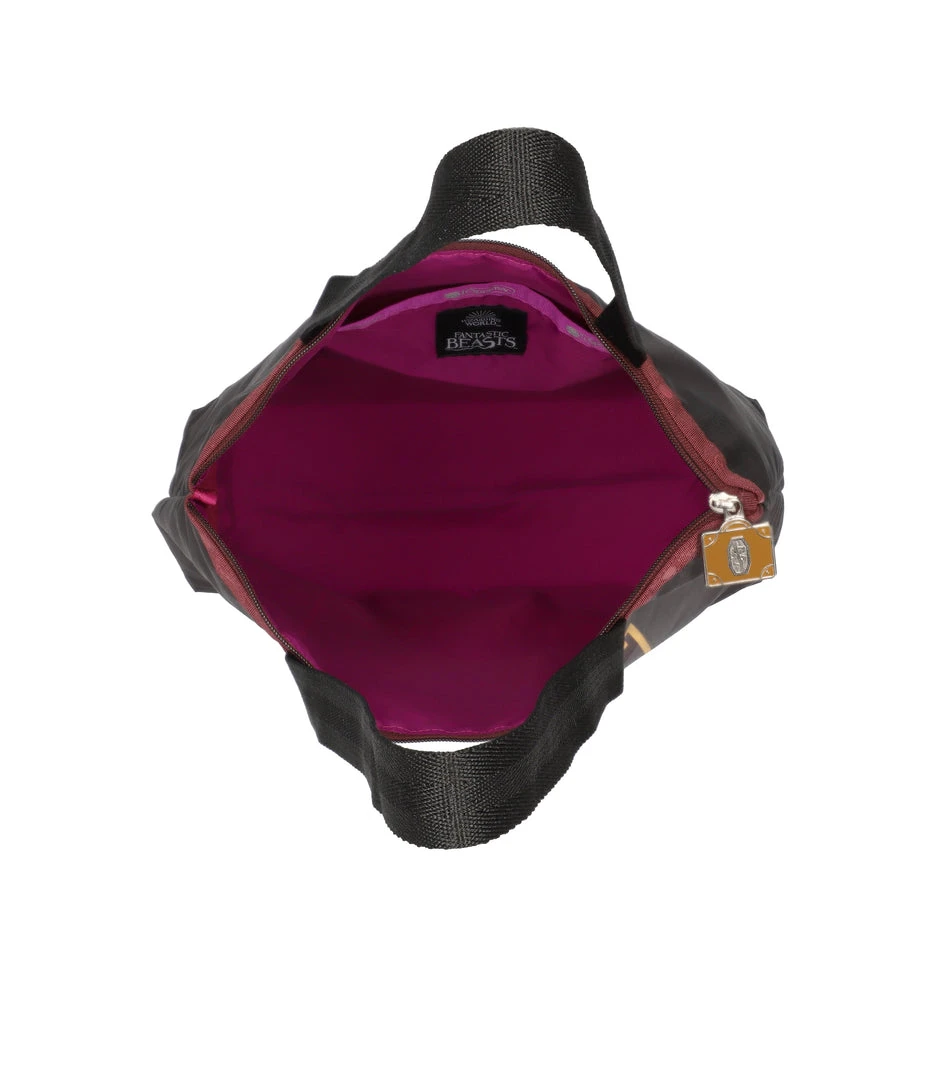 Zipped main closure, 1in (2.5cm) wide top handles (Length: 24.6 in/62.5 cm), Interior back wall combination zip/open pocket